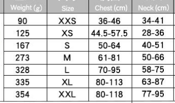 Specifications (length * width): S, M, L, XL, XXL, XS