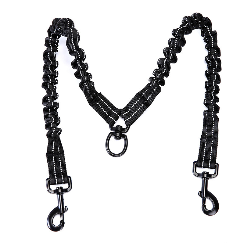 Product description: Double-headed traction belt, double-headed design, can drag two dogs at the same time with one traction belt. Using high-quality nylon material, stainless steel pull ring, sturdy and durable, beautiful and generous. Practical and convenient, factory direct sales, lots of stocks. You can choose a variety of double-ended ropes, including elastic models, adjustable models, and big dog lock models.