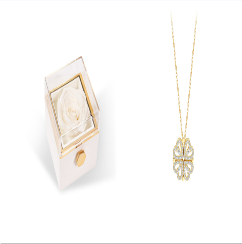 Retro magnetic folding heart-shaped four-leaf clover necklace, 4-in-1 design, multi-wearing models, the first model is that four hearts are combined into a four-leaf clover necklace, and the other is four hearts spread outlined into a 4 love-shape necklace.