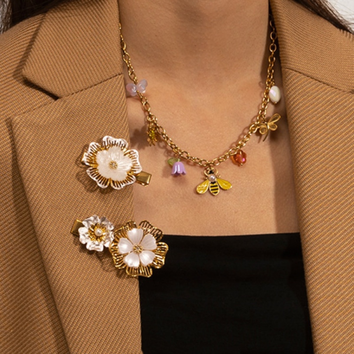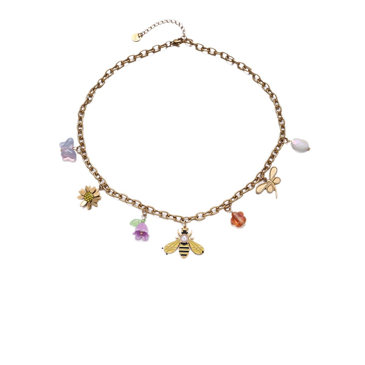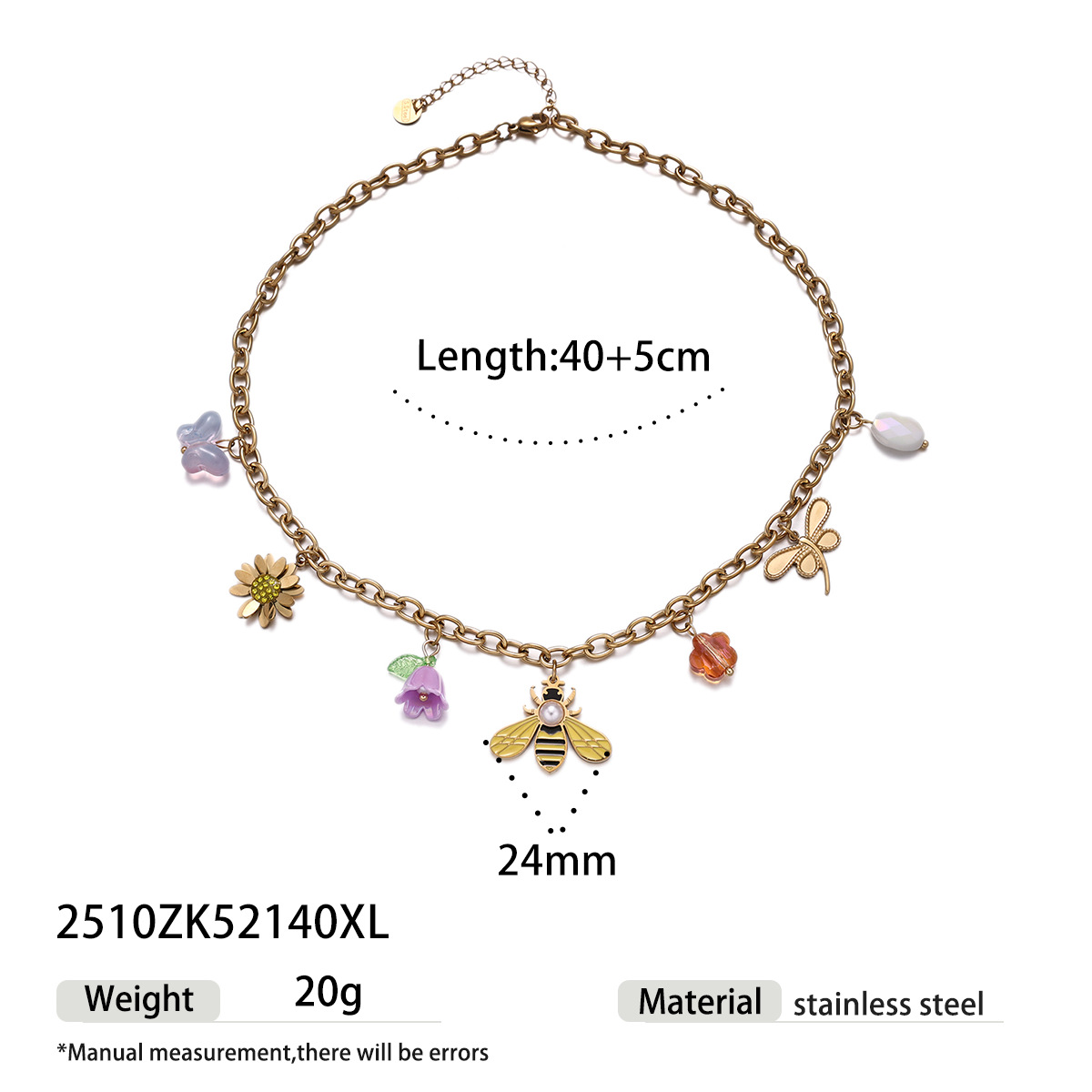 Exquisite Bee Dragonfly Multiple Pendant Titanium Steel Necklace