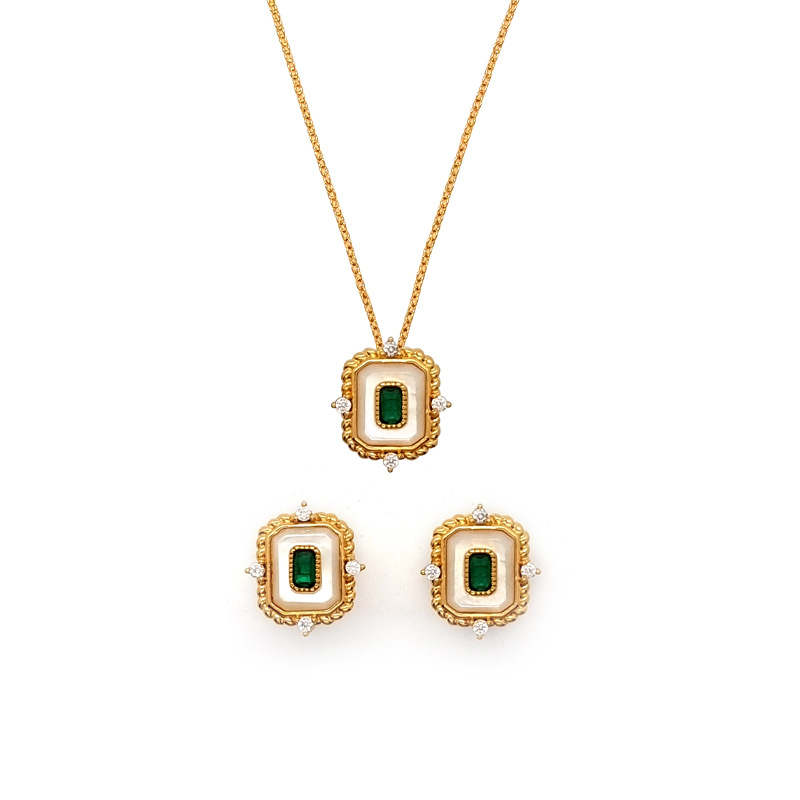 Color: Emerald zircon necklace, Emerald Zircon stud earrings