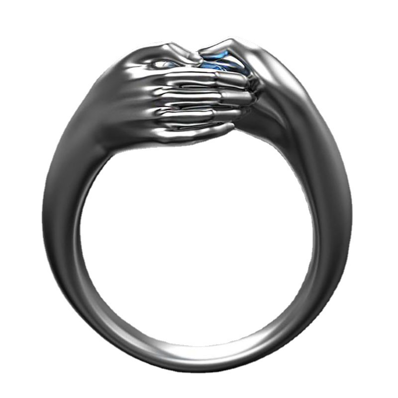Exquisite Hands Embrace Blue Crystal Zircon Ring Elegant Female Wedding Engagement Silver Color Ring Fashion Love Jewelry Gift