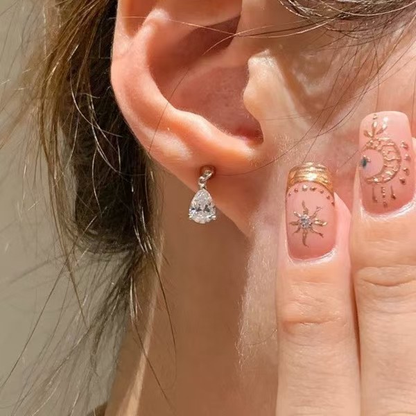 Color: Gold Waterdrop Zircon Stud Earrings, Silver Waterdrop Zircon Stud Earrings