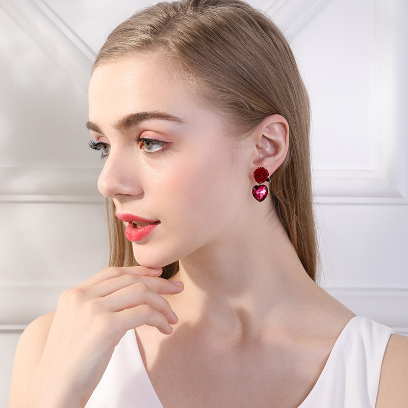 Product information:Treatment Process: Diamond Color: Rose Red Material: zinc alloy Popular elements: Love/heart Style: Retro