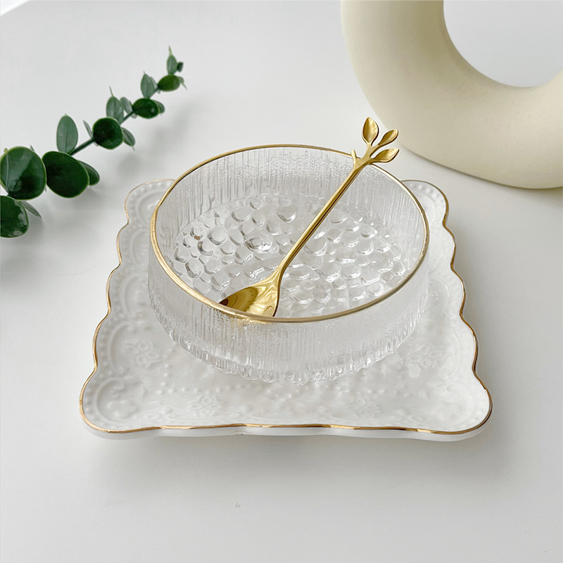 Style: Style 1 Phnom Penh Ice Crystal Bowl + White Square Plate + Leaf Spoon, Style 2 Phnom Penh Ice Crystal Bowl + White Round Plate + Leaf Spoon, Style 3 Phnom Penh Ice Crystal Bowl + White Bread Plate + Leaf Spoon, Style 4 Phnom Penh Ice Crystal Bowl + White Rectangular Plate + Leaf Spoon, Style 5 Phnom Penh Ice Crystal Bowl + Golden Square Plate + Leaf Spoon, Style 6 Phnom Penh Ice Crystal Bowl + Golden Round Plate + Leaf Spoon, Style 7 Phnom Penh Ice Crystal Bowl + Golden Bread Plate + Leaf Spoon, Style 8 Phnom Penh Ice Crystal Bowl + Golden rectangular plate + leaf spoon, style 9 Transparent ice crystal bowl + white square plate + leaf spoon, style 10 transparent ice crystal bowl + white round plate + leaf spoon, style 11 transparent ice crystal bowl + white bread plate + leaf spoon, Style 12 transparent Ice crystal bowl + white rectangular plate + leaf spoon, style 13 transparent ice crystal bowl + golden square plate + leaf spoon, style 14 transparent ice crystal bowl + golden round Plate + leaf spoon, style 15 transparent ice crystal bowl + golden rectangular plate + leaf spoon , Style 16 Transparent Ice Crystal Bowl + Golden Bread Plate + Leaf Spoon, Style 17 Phnom Penh Ice Crystal Bowl + Acacia Wood Oval Mat-Leaf Spoon, Style 18 Transparent Ice Crystal Bowl + Acacia Wood Oval Mat-Leaf Spoon, Style 19 Phnom Penh Ice Crystal Bowl, Style 20 Transparent ice crystal bowl,