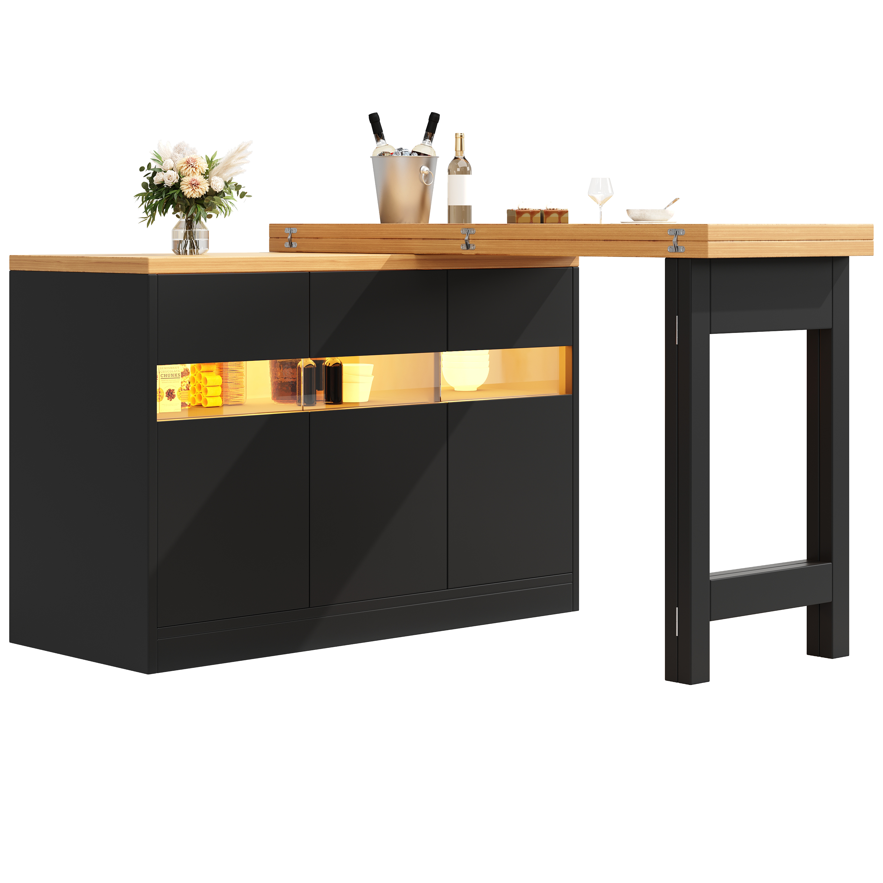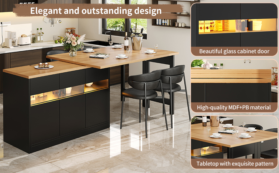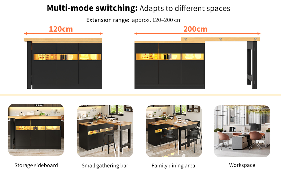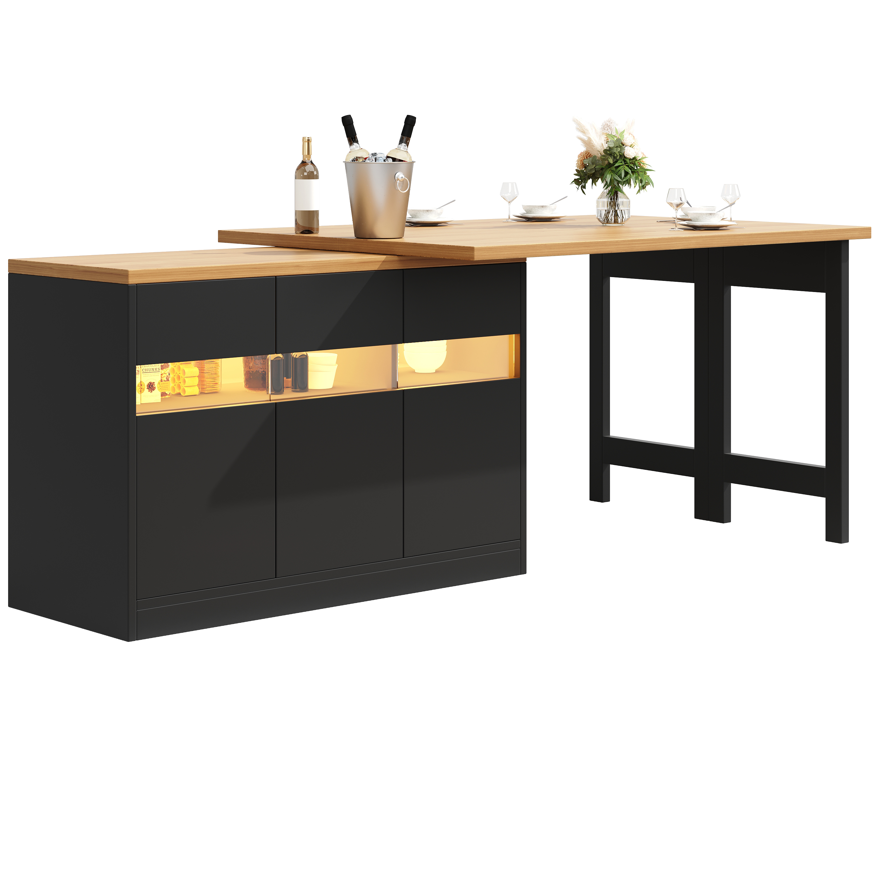 Product Name:Extendable bar table with LED lighting and 360° swivel function, adjustable length 120-180 cm, modern kitchen island table with storage space, for living room, dining room, home office