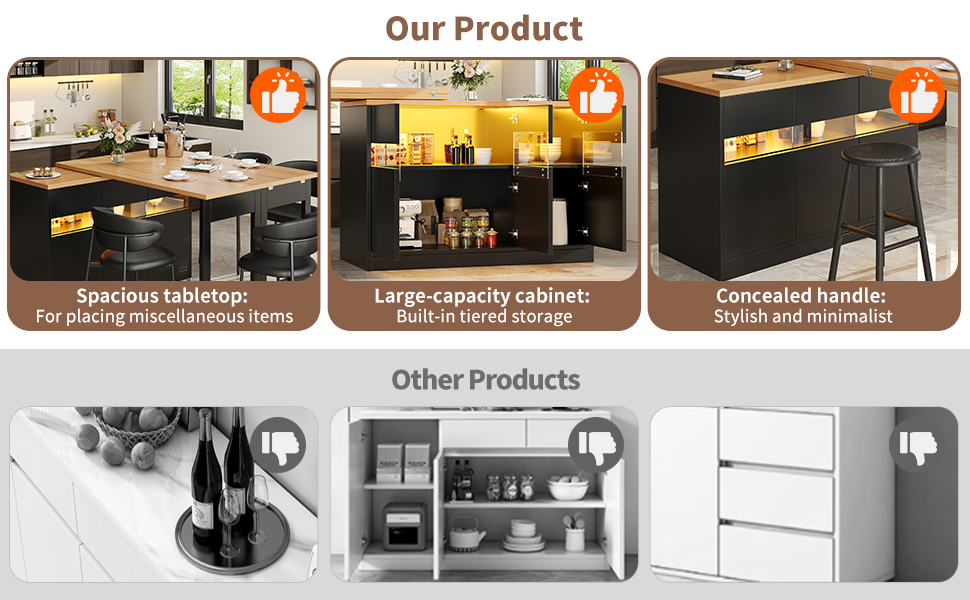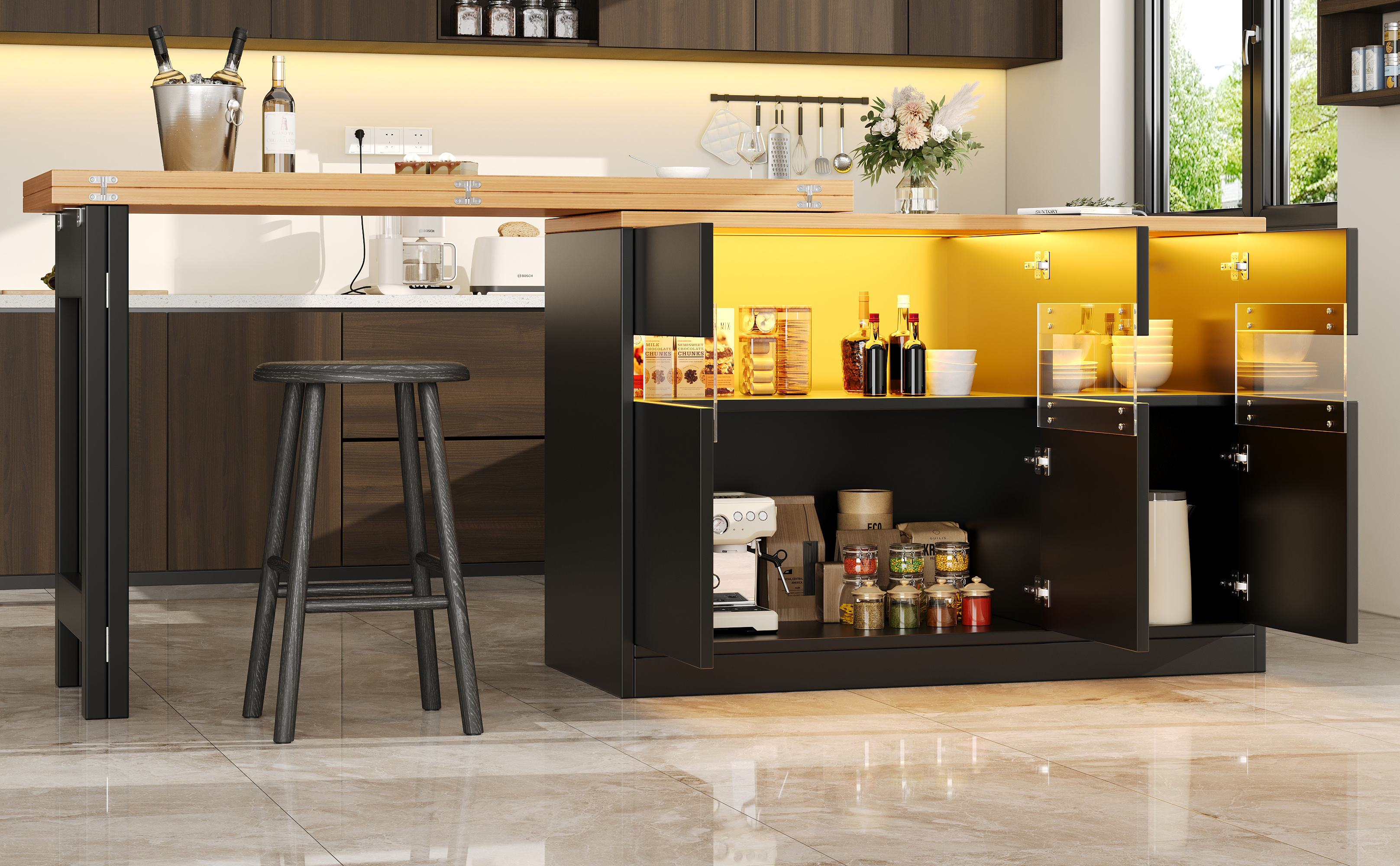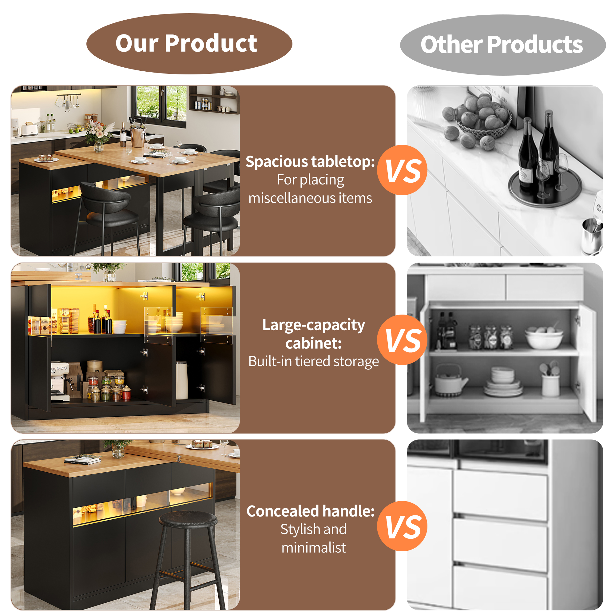 Product Name:Extendable bar table with LED lighting and 360° swivel function, adjustable length 120-180 cm, modern kitchen island table with storage space, for living room, dining room, home office