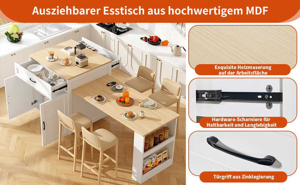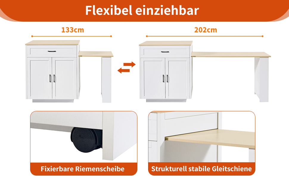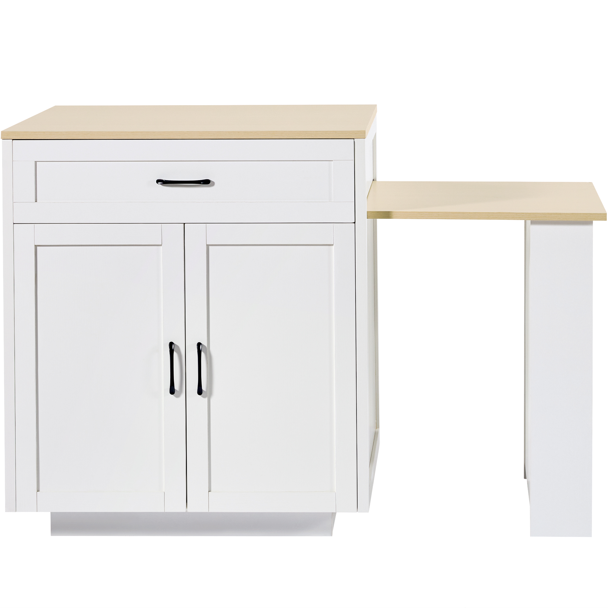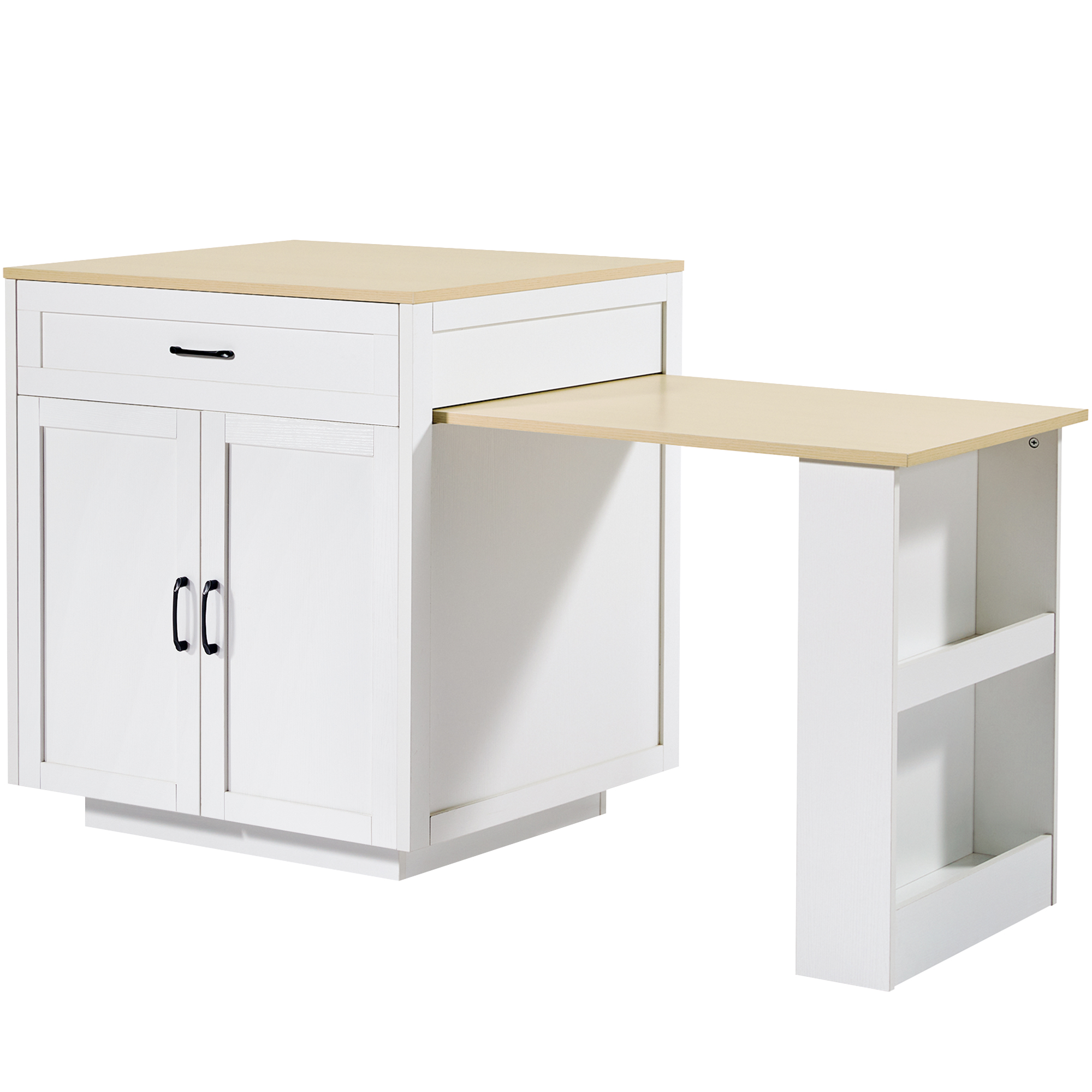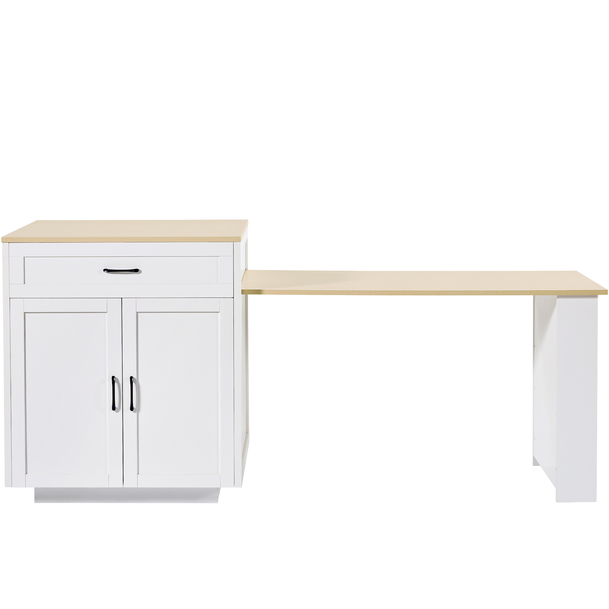 Product Name:Extendable Bar Table with Storage (133–202 × 70 × 93.5 cm), with 2 Drawers and 2 Compartments, Expandable Kitchen Island Table for 2–6 People, Kitchen Dining Cart with Side Shelves, White.