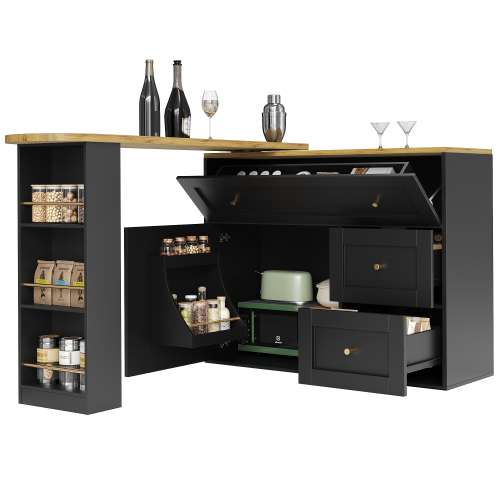 Product Name:Extendable bar table with storage space (138-204×39×105cm), kitchen cabinet, sideboard with snack shelf, telescopic bar table, high table, bistro table, high table, kitchen island, black