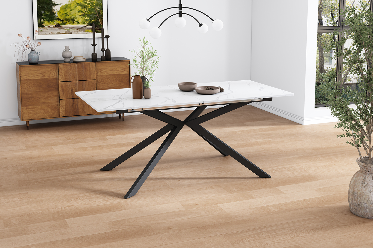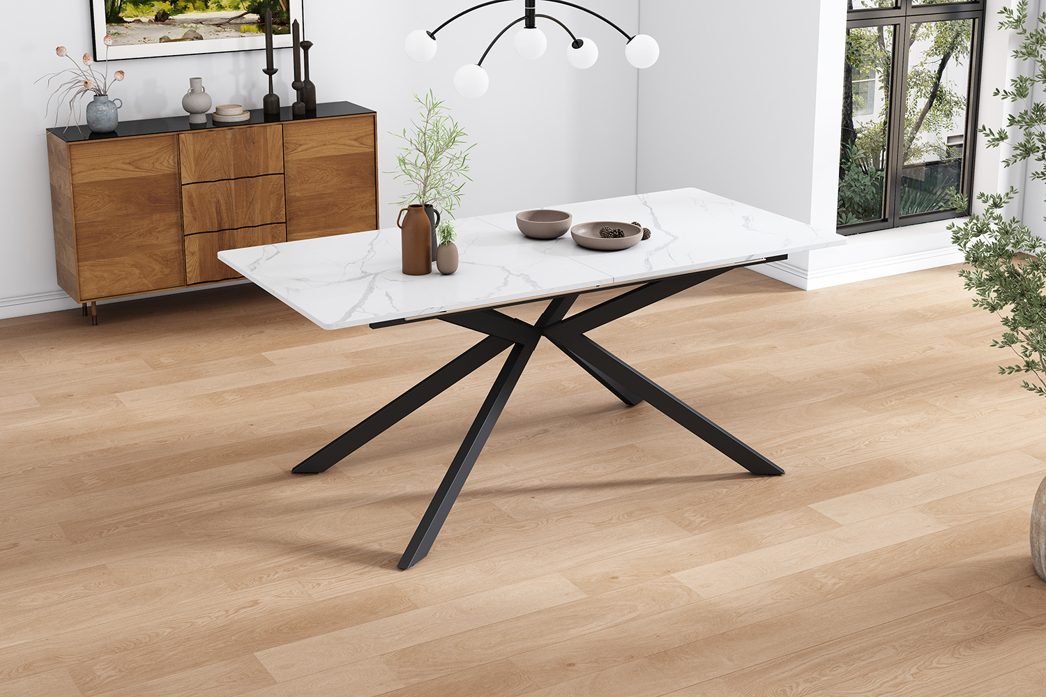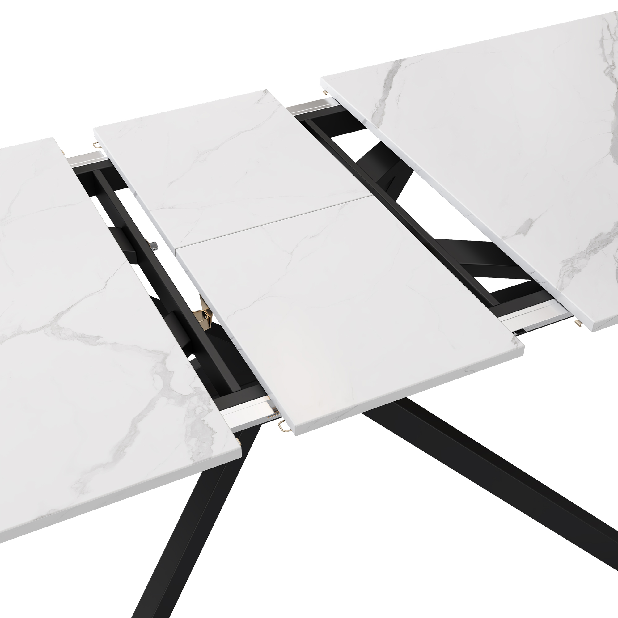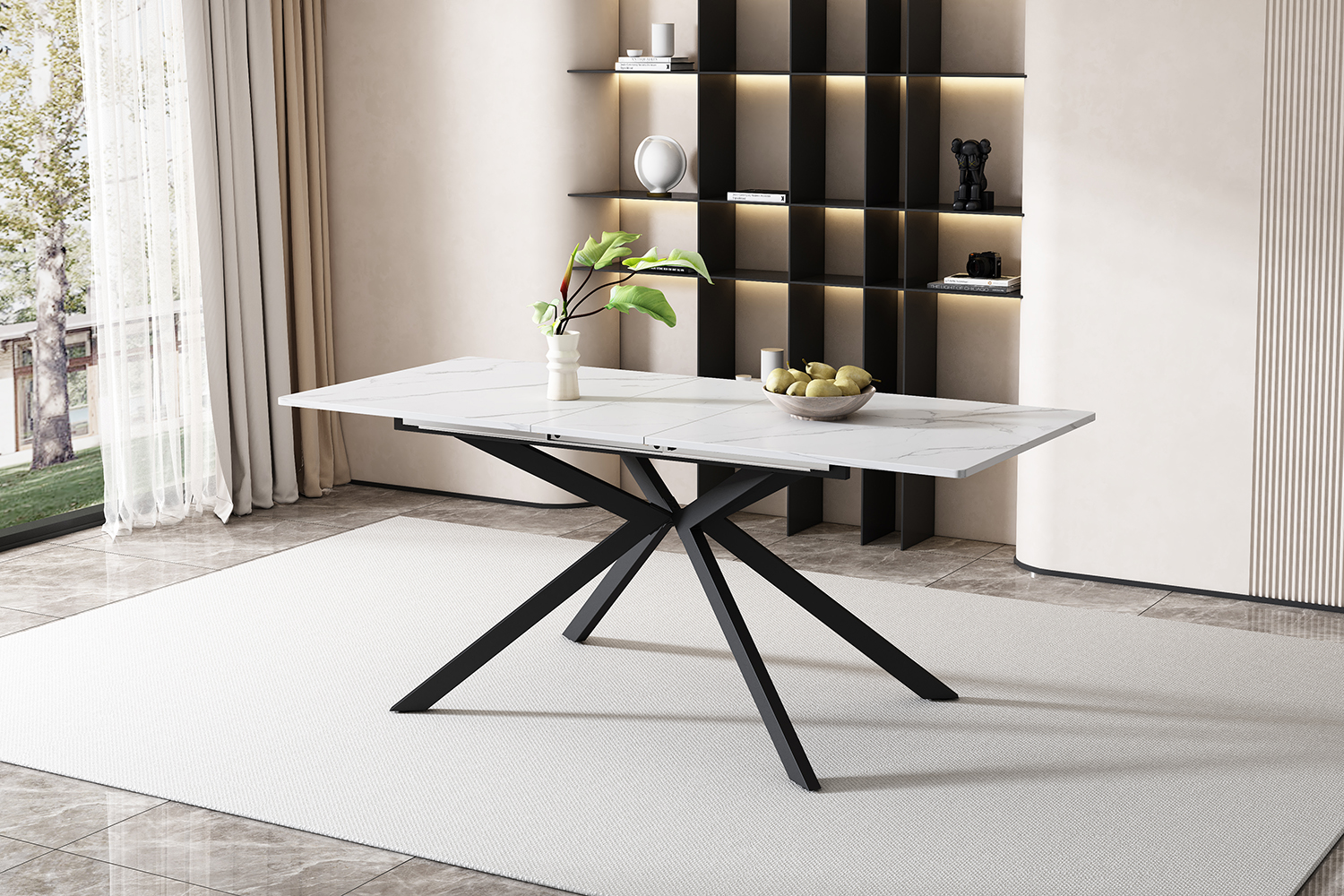 Product Name:Extendable dining table, automatically extendable dining table, rectangular table, coffee/leisure table, L150/180 x W70 x H75.5 cm, cross leg design, marble structure, black and white