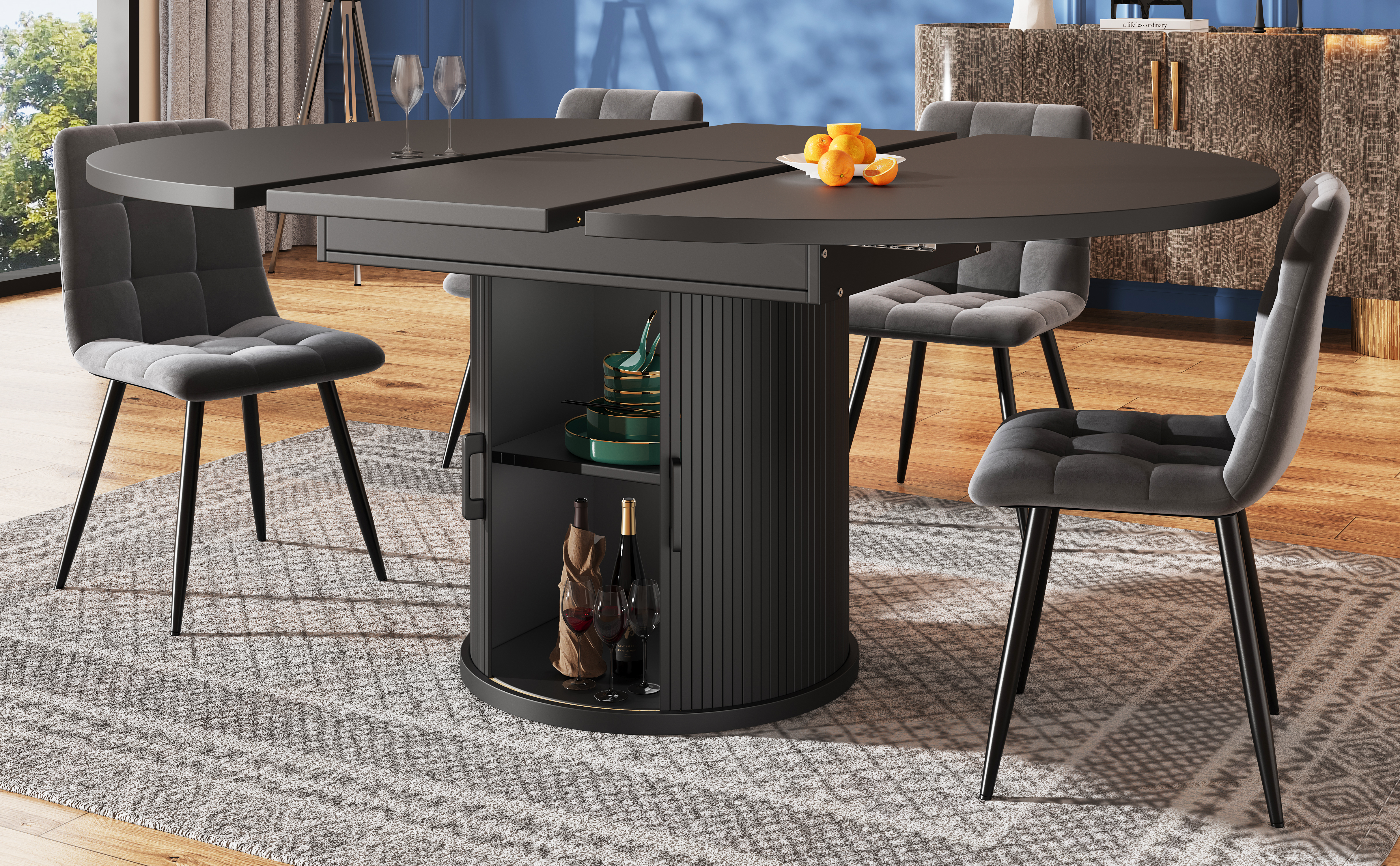 Equipped with smooth sliding mechanisms underneath, the extension leaves can be neatly stored in a hidden compartment when not in use, solving traditional storage difficulties.