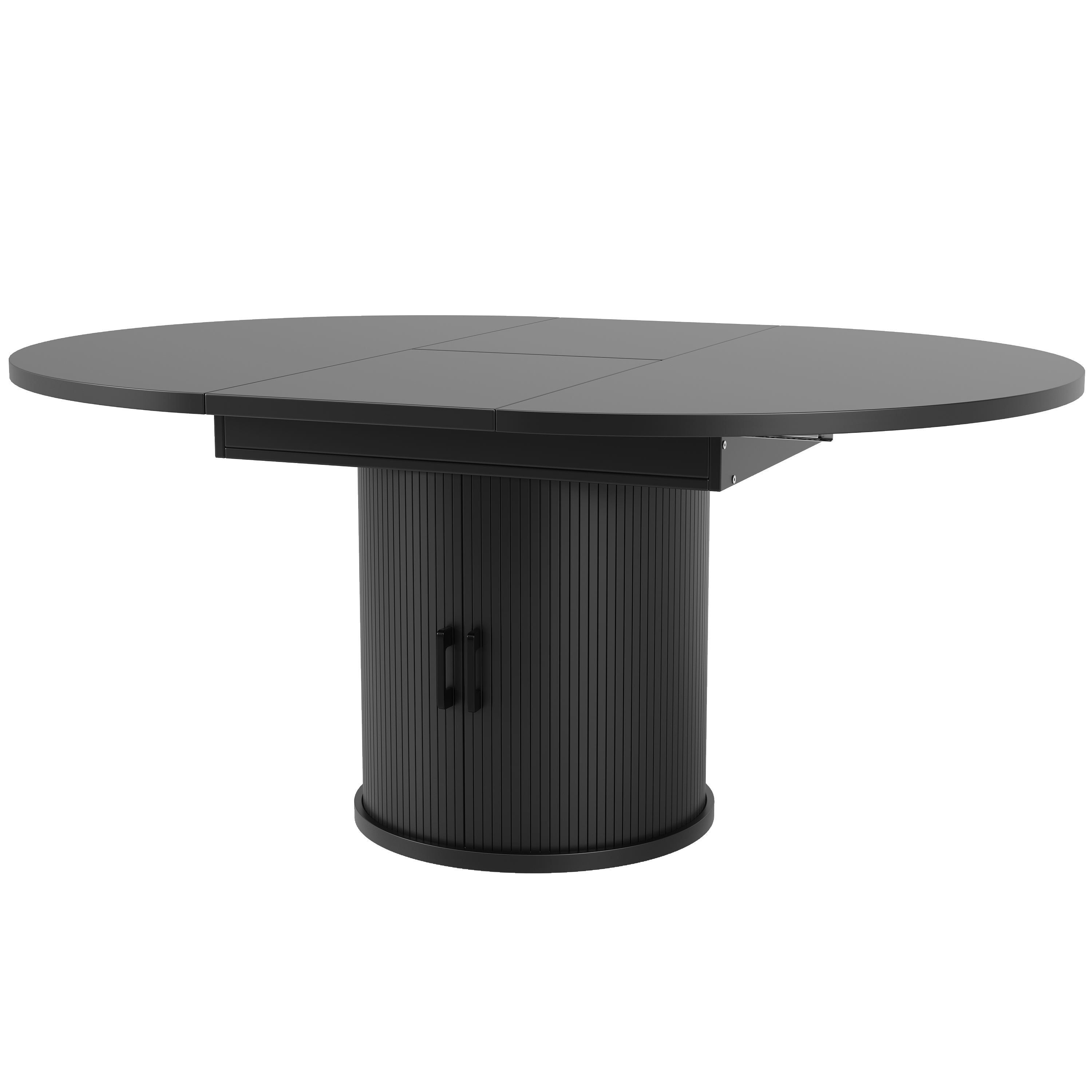 Product Name:Extendable dining table, dining room table, kitchen table, balcony table, extendable table top Round dining table, extends to oval, 118–158 cm, seats up to 6 people, walnut/black