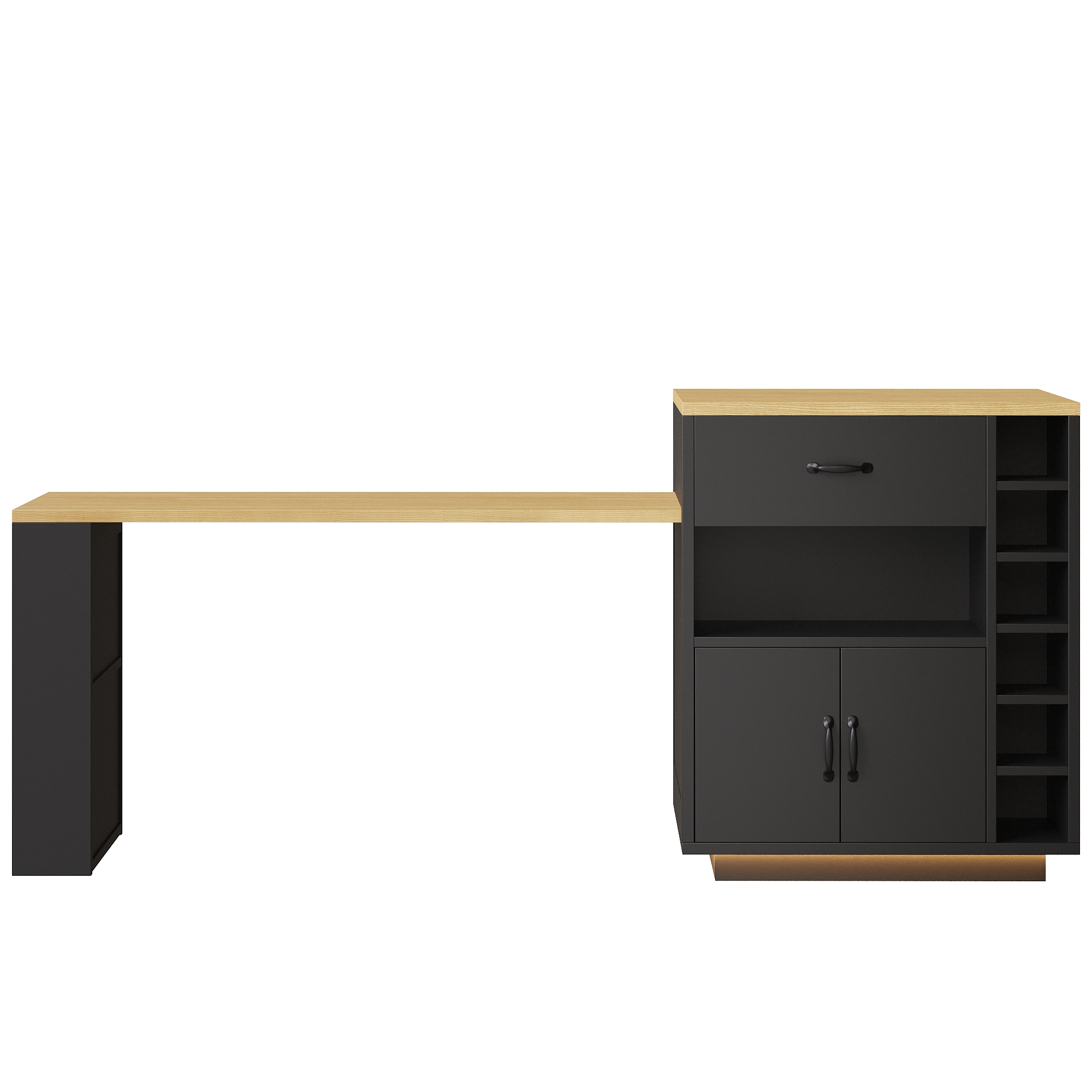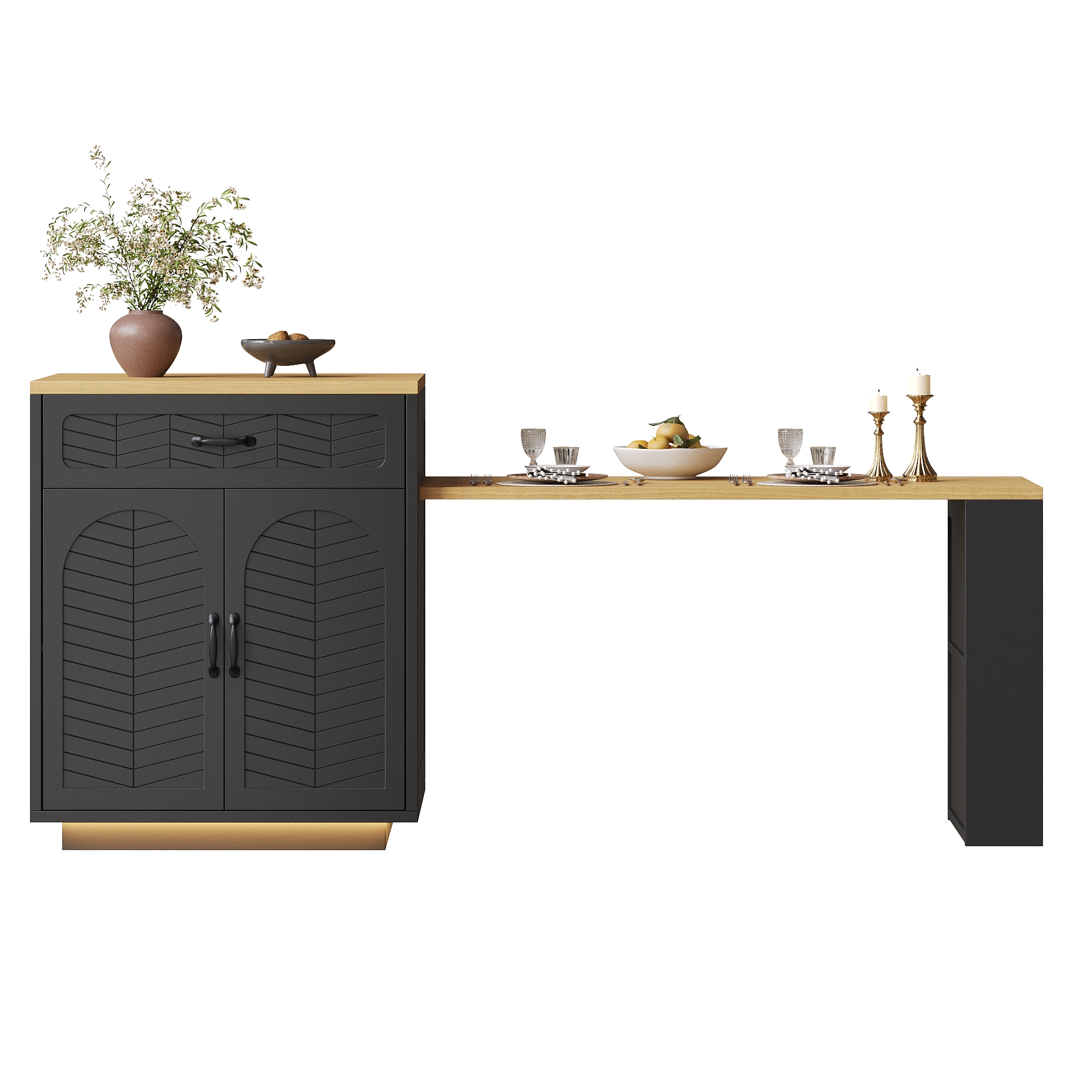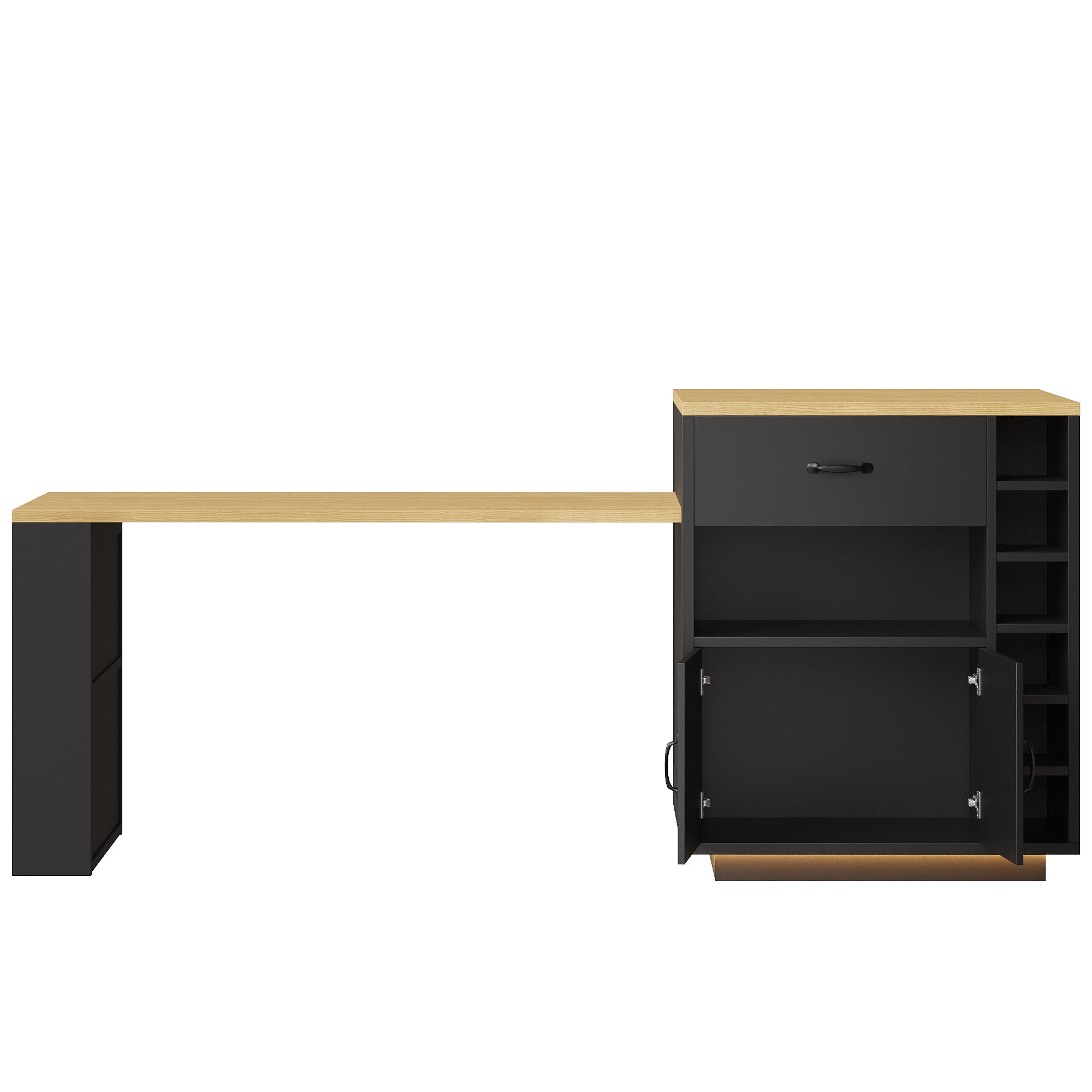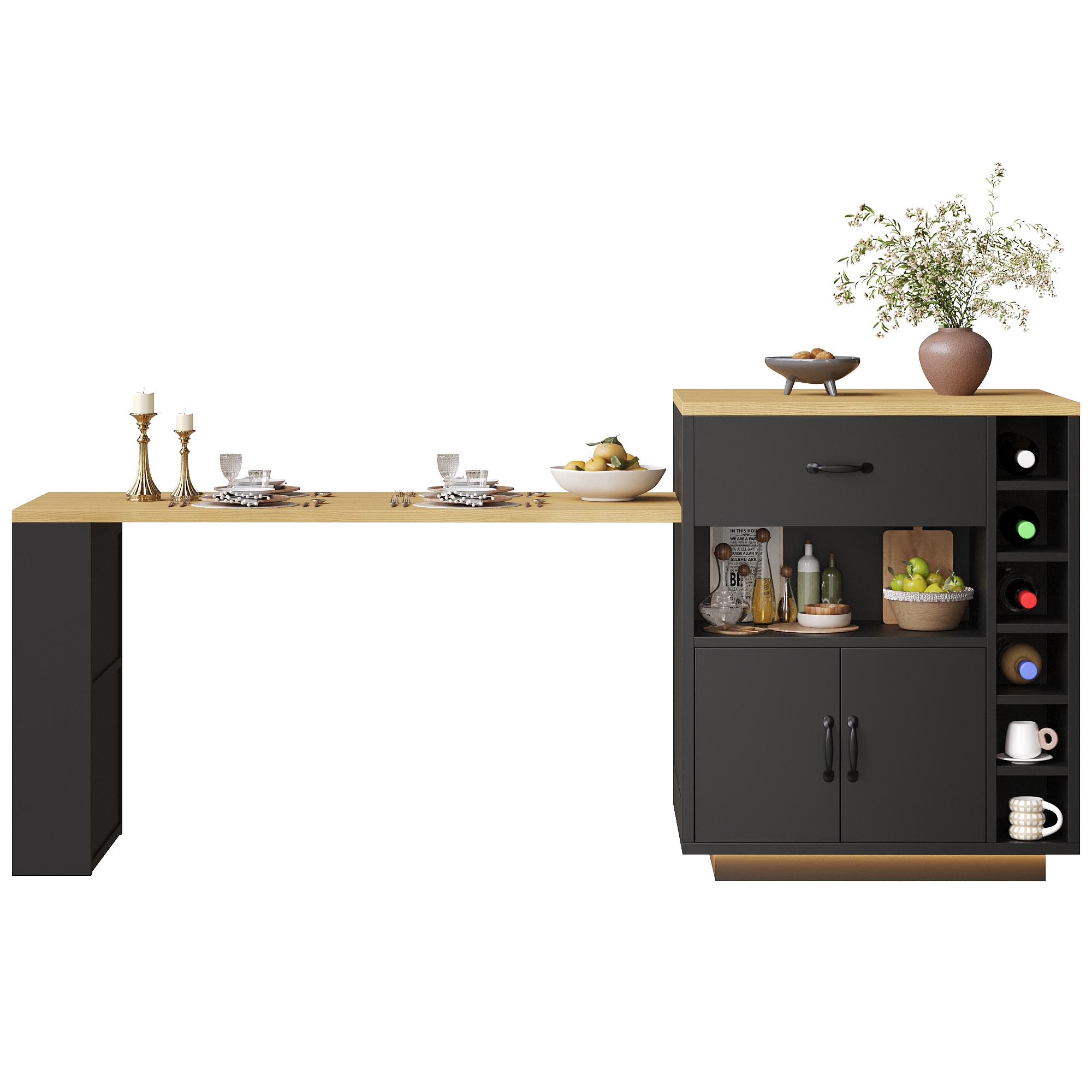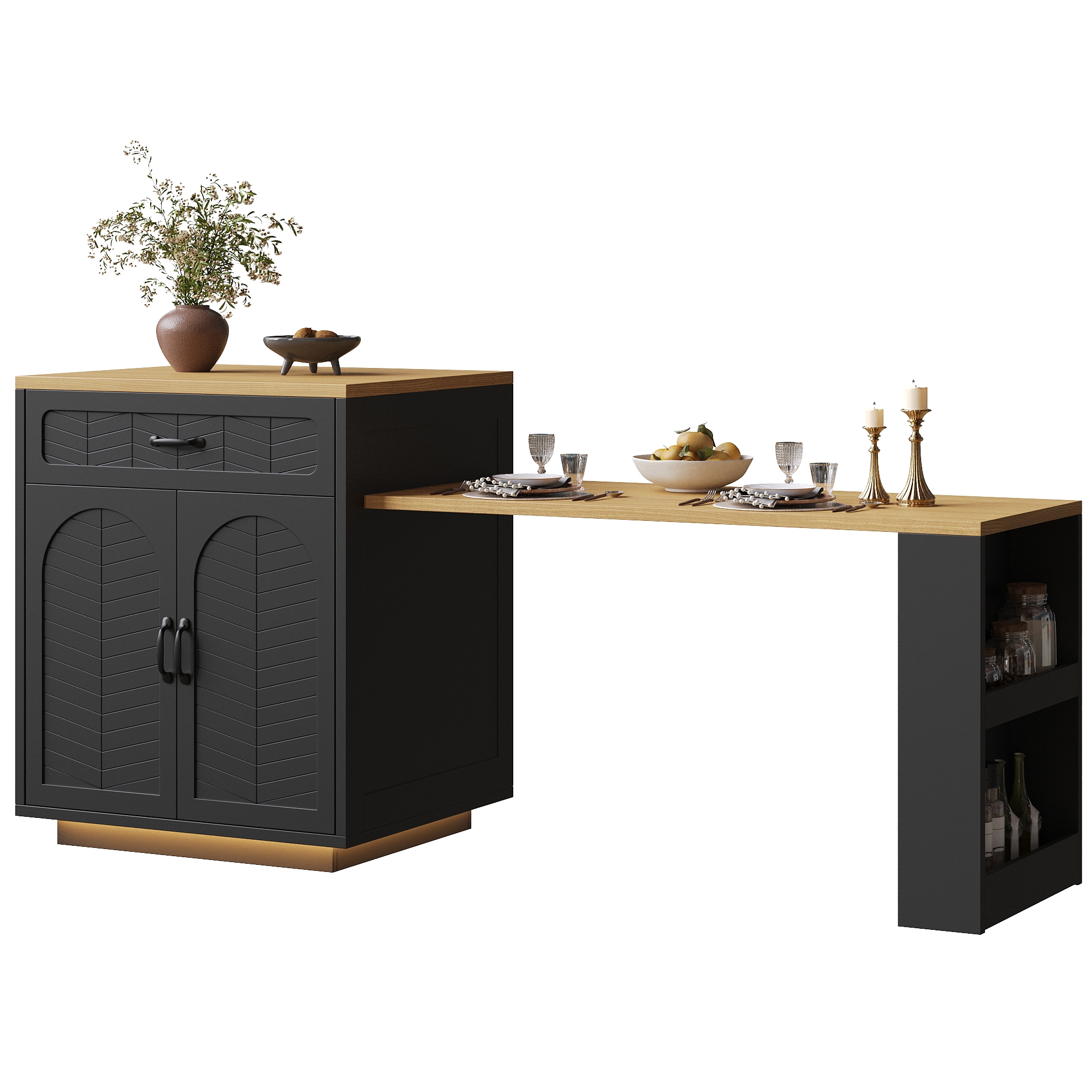 Product Name:Extendable Kitchen Island with Dining Table, Multifunctional Storage Cabinet with Drawers, Doors, Wine Rack & LED Light, for Kitchen & Dining Room