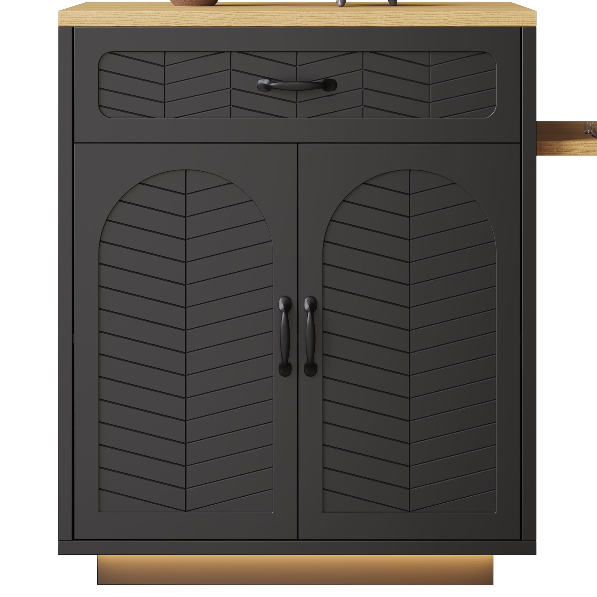 • Premium Design & Fine Details:The cabinet features exquisite chevron-patterned doors, shiny metal handles, soft-closing hinges, and high-quality drawer runners for smooth operation. A bright LED light strip at the base adds a modern, stylish touch to your kitchen.