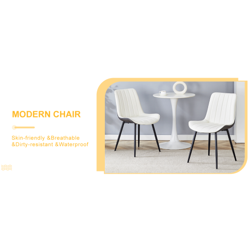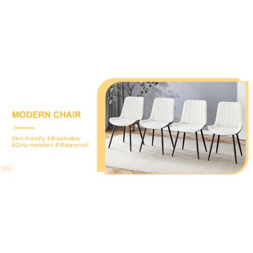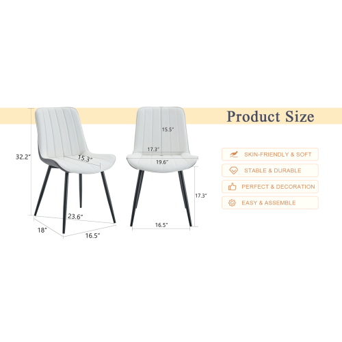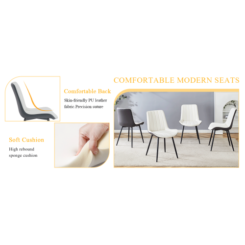 Product Name:Extended Seat Cushion PU Dining Chair Set - Four Pieces.Smooth line design.Can integrate well into various modern home decoration styles.White and Dark Gray Splicing Colors.