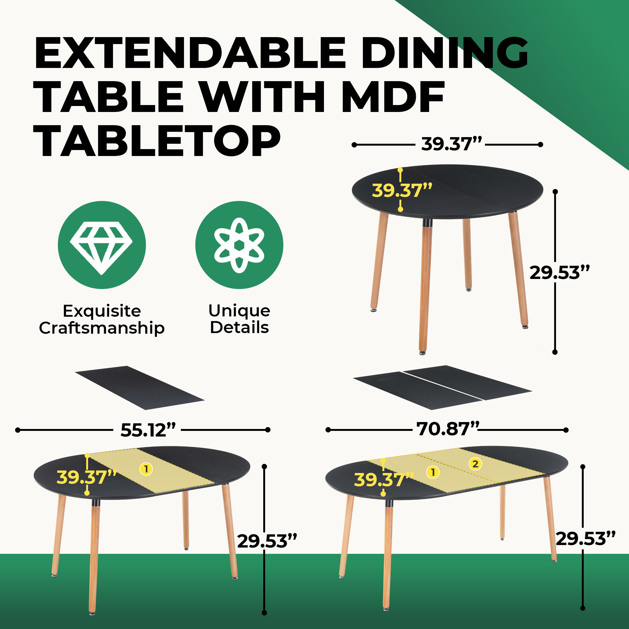 Product Name:Extensible table,DINING TABLE,OFFICE TABLE,COFFEE TABLE,wood leg,MDF top,100/140/180x100x75cm,black color