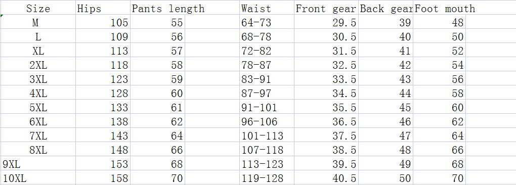 Size: M, L, XL, 2XL, 3XL, 4XL, 5XL6XL, 7XL, 8XL, 9XL, 10XL