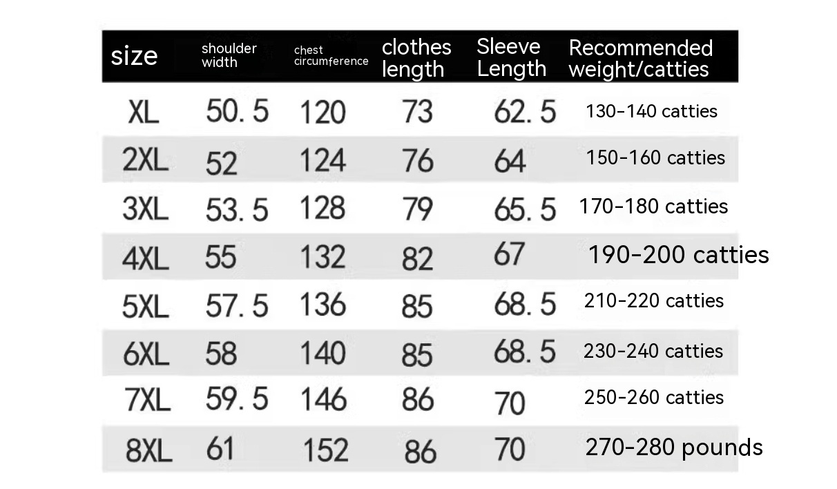 Size: XL,2XL,3XL,4XL,5XL,6XL,7XL,8XL