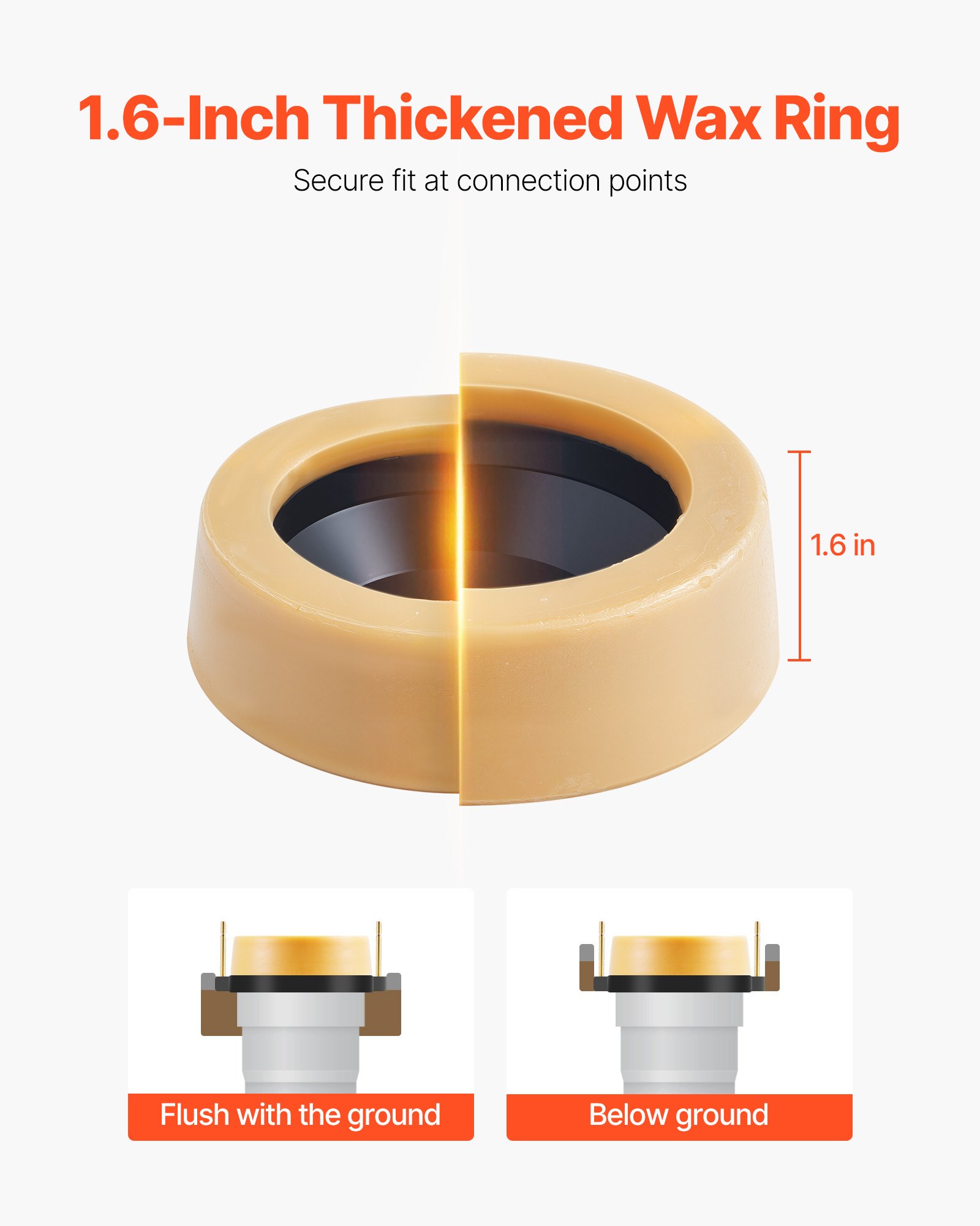 Extra Thick Toilet Wax Ring Kit With Brass Bolts Fits 3-Inch 4-Inch Drain Pipes