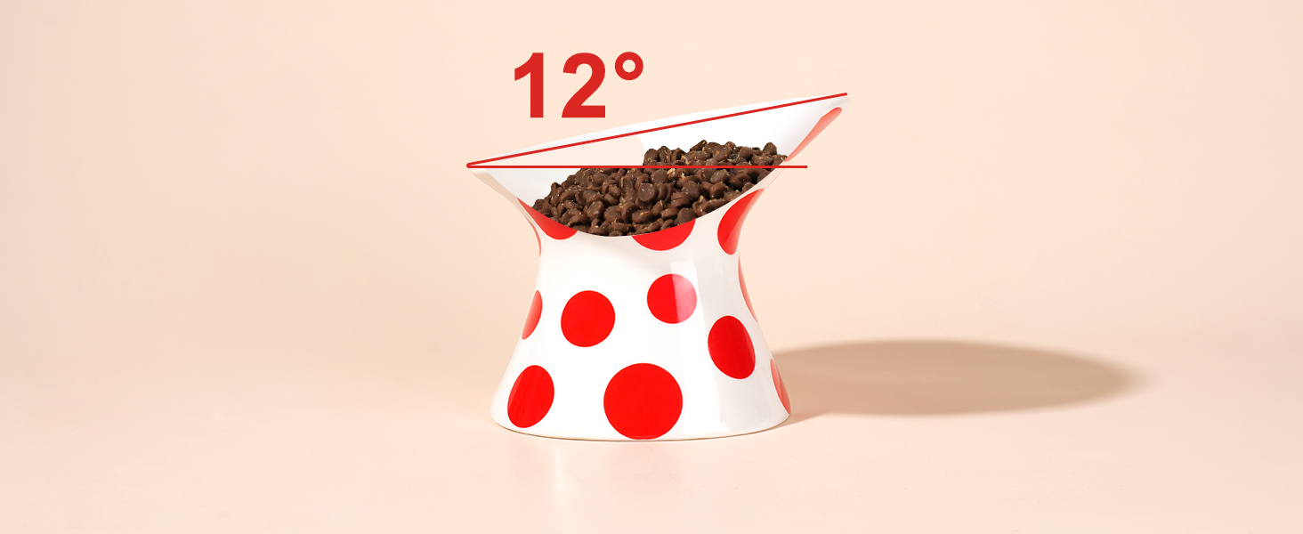 【TILT ANGLE DESIGN】 the tilted cat food bowl keeps food piled or falls to the center, it helps keep the food from being pushed off the bowl, easy for your cat to eat. Perfect for flat face cats.