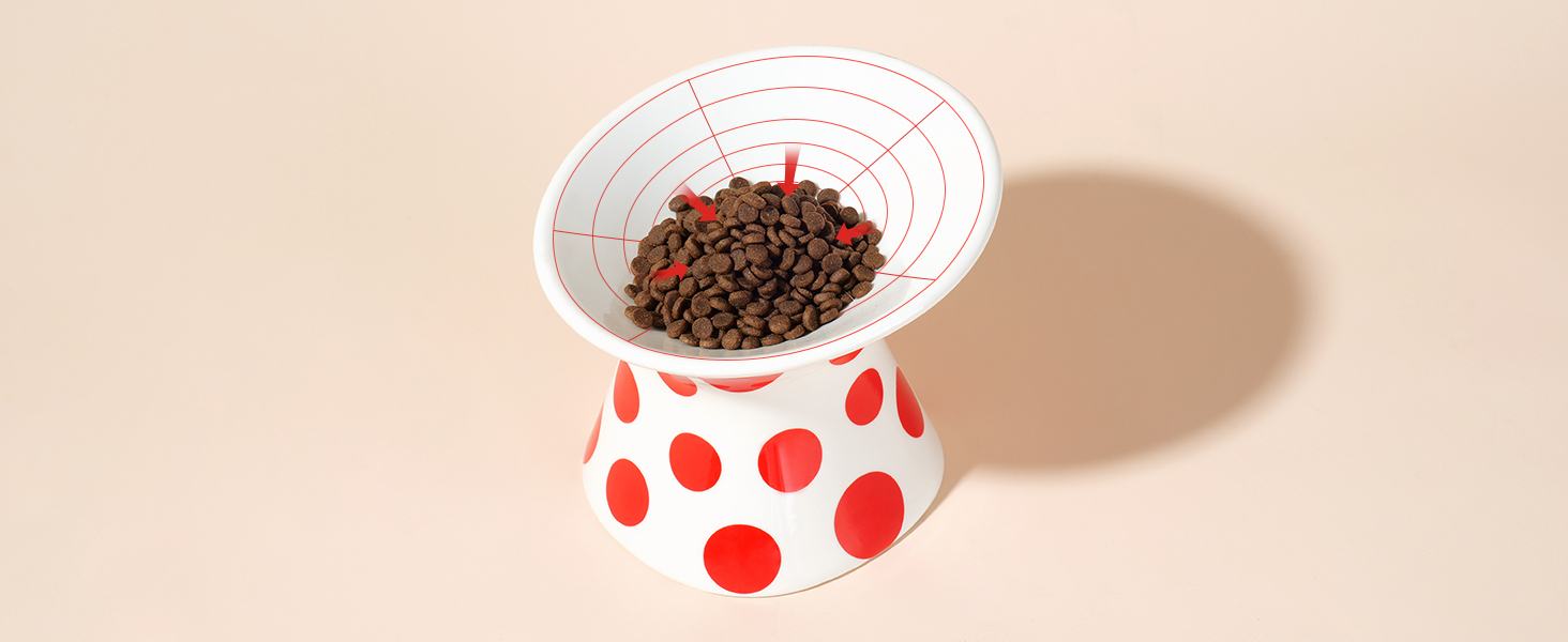 【PRACTICAL AND AESTHETIC DESIGN】This cat bowl features a classic red polka dot design that not only meets the practical needs of pets but also seamlessly blends into various home decor styles. It is not just a functional pet accessory; it represents the pet owner's pursuit of a quality lifestyle.