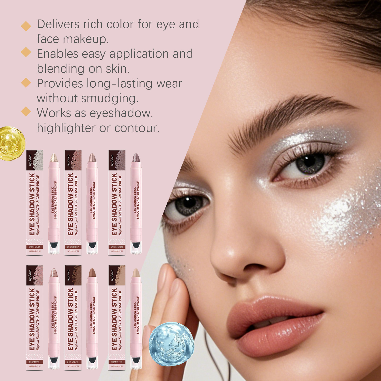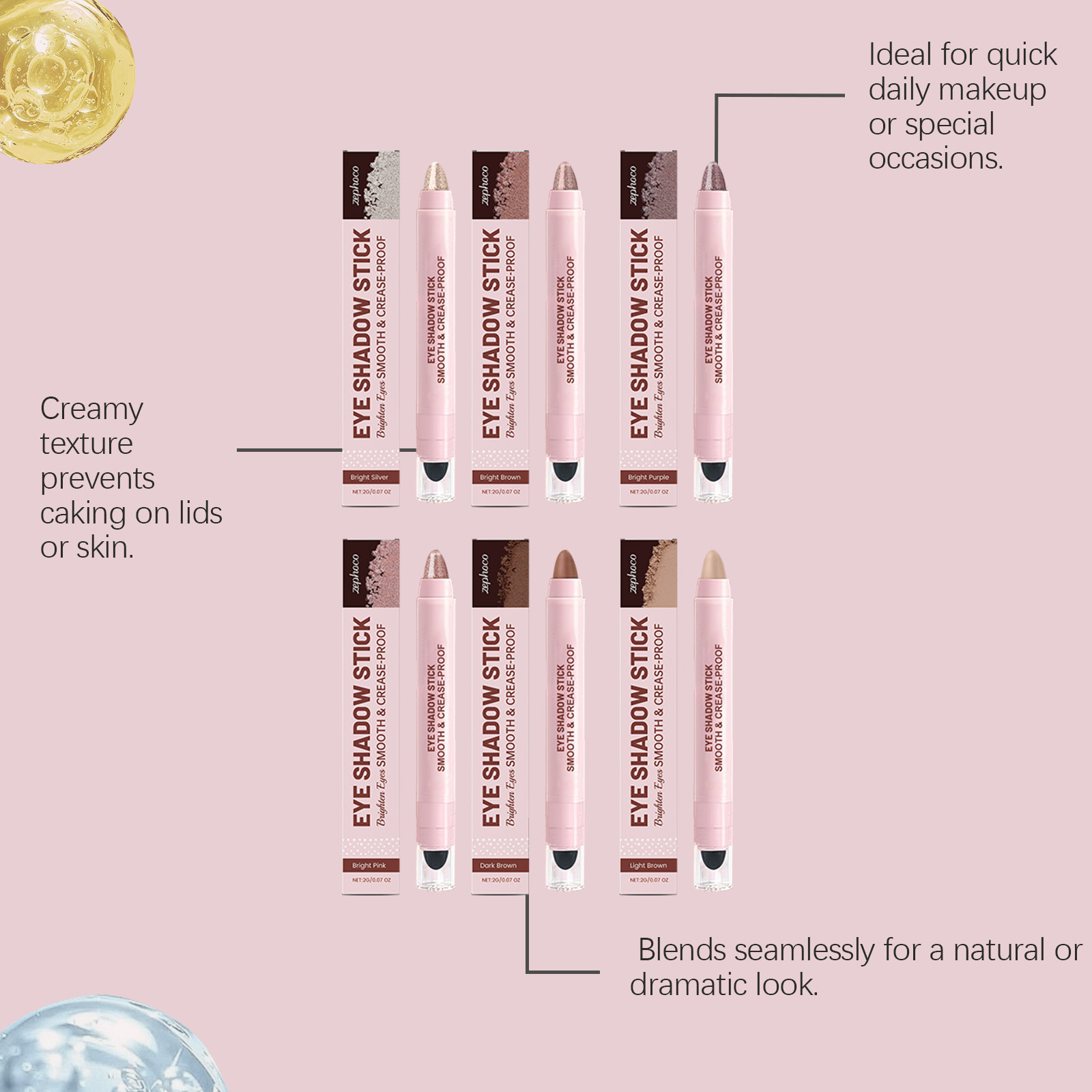 Color: bright pink, bright silver, bright purple, bright brown, light brown, dark brown.