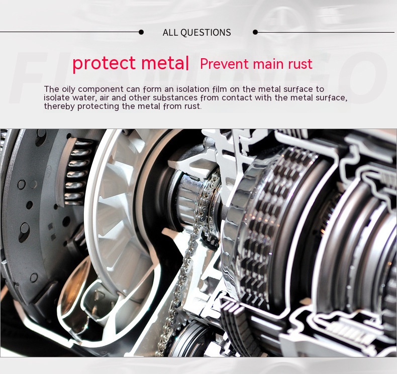 Function: it is widely used in rusting problems of vehicles, ships, families, tools and data centers. It can quickly penetrate rusty parts, loosen rust and remove rust, and has the functions of lubrication and rust protection.