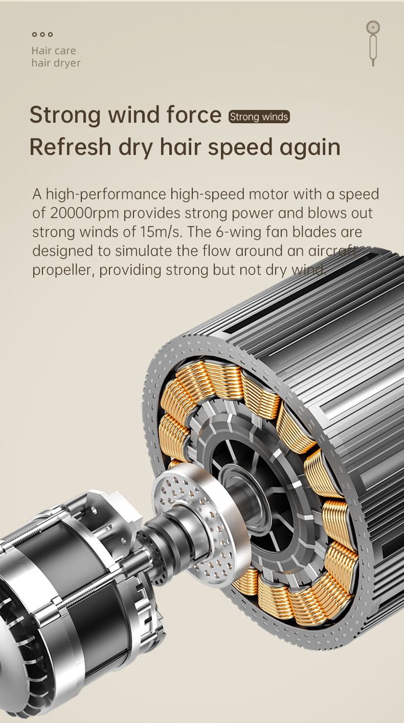 High speed electric turbine airflow: Experience the power of high-speed electric turbine airflow, aimed at quickly and efficiently drying hair.