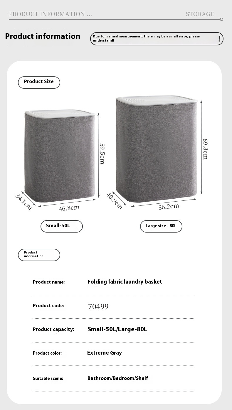 Color: 70498 small size folding laundry basket 50L,70499 large size folding laundry basket 90L