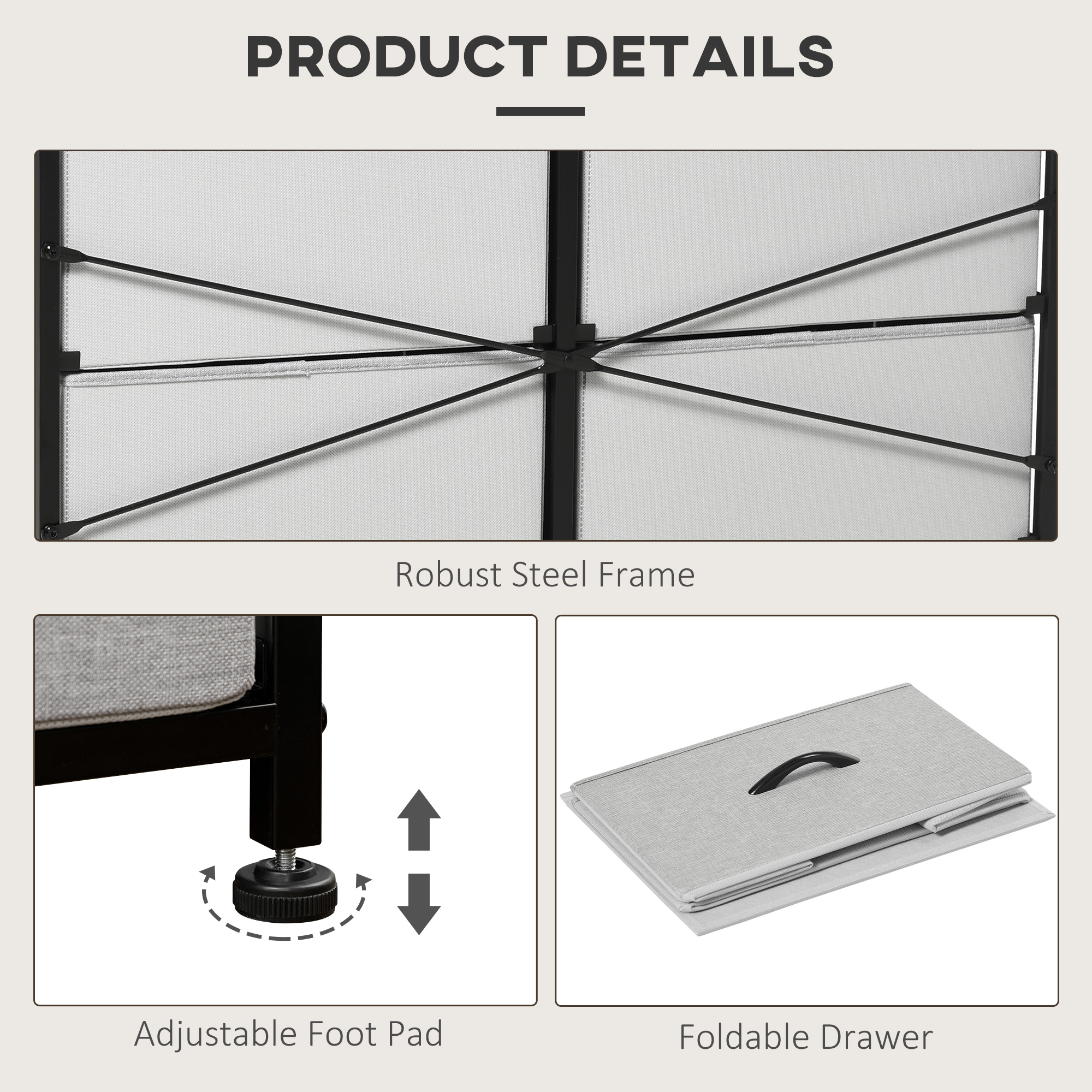 Home storage with this fabric chest of drawers. The eight fabric drawers offer room for lots of things - keep t-shirts, tops, bottoms and more organised. The wood-effect top offers more room: a great place to display your favourite photos. The steel frame makes a strong core, with adjustable feet for balance. Comes with anti-tipping straps for safety. Use all over the home and office.