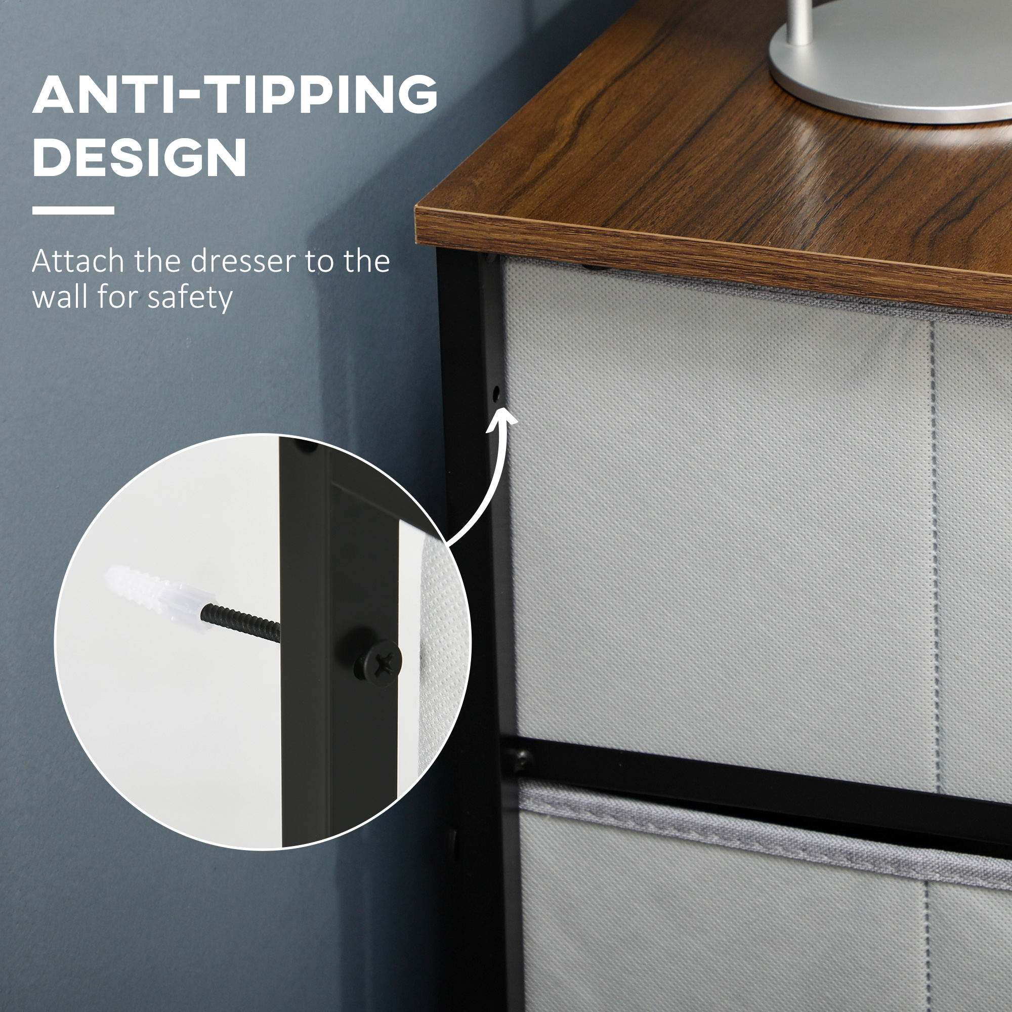 Home storage with this fabric chest of drawers. The six fabric drawers offer room for lots of things - keep t-shirts, tops, bottoms and more organised. The wood-effect top offers more room: a great place to display your favourite photos. The steel frame makes a strong core, with adjustable feet for balance. Comes with anti-tipping straps for safety. Use all over the home and office.