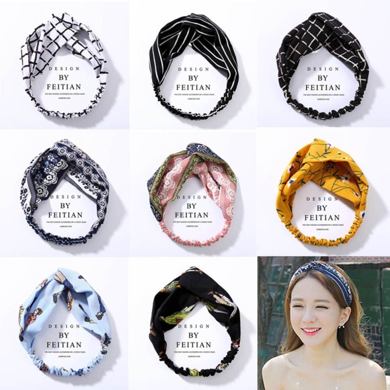 Fabric cross-knotted bow chiffon floral headband