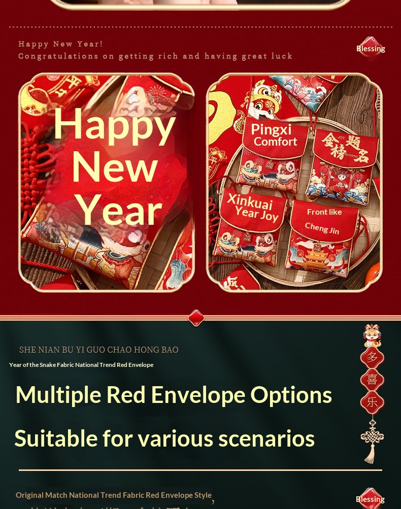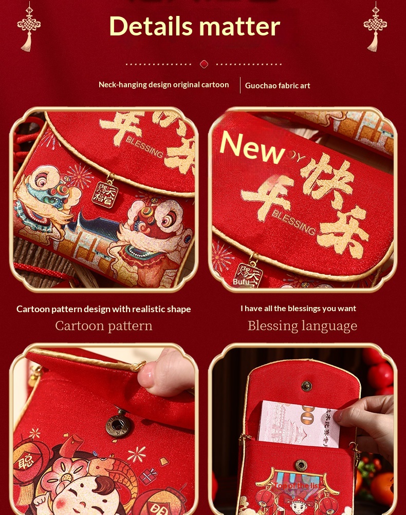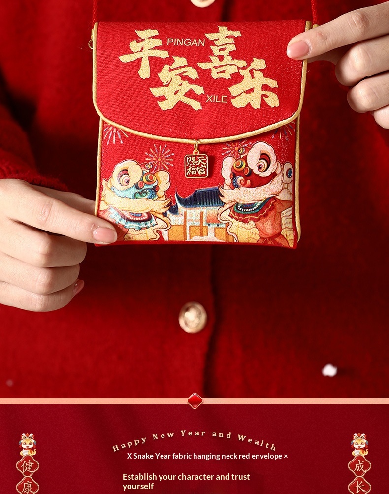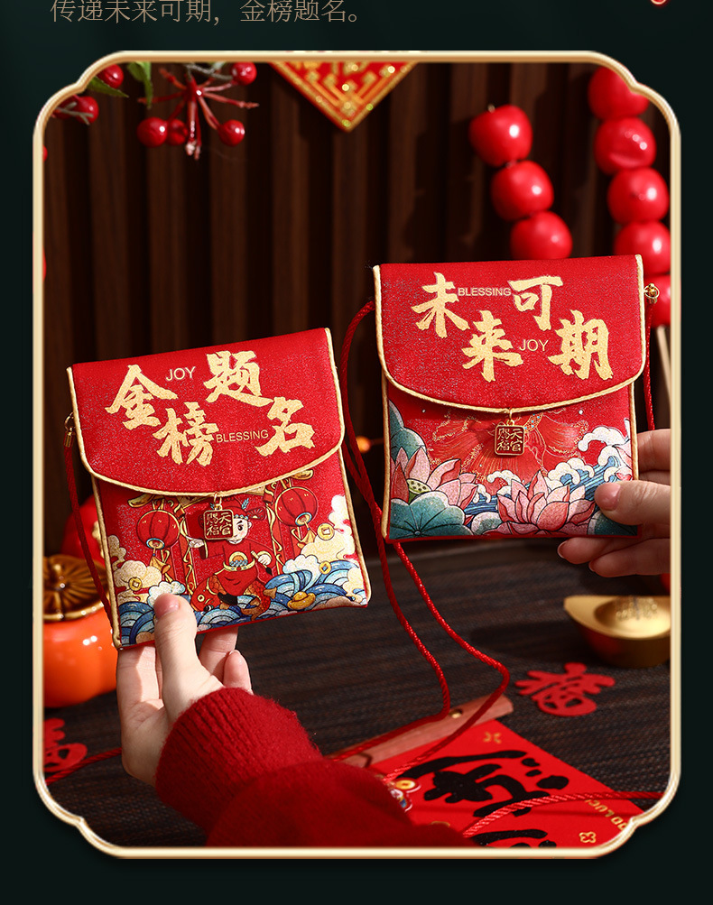 Colors: [Wise & Intelligent] with crossbody strap, [Peace & Joy] with crossbody strap, [Healthy Growth] with crossbody strap, [Congratulations on Your Wealth] with crossbody strap, [Lucky Red Packet Bag] with crossbody strap, [Happy Birthday] with crossbody strap, [New Year Red Packet] with crossbody strap, [Happy New Year] with crossbody strap, [Bright Future Ahead] with crossbody strap, [Success in Exams] with crossbody strap, [A Bright Future] with crossbody strap
