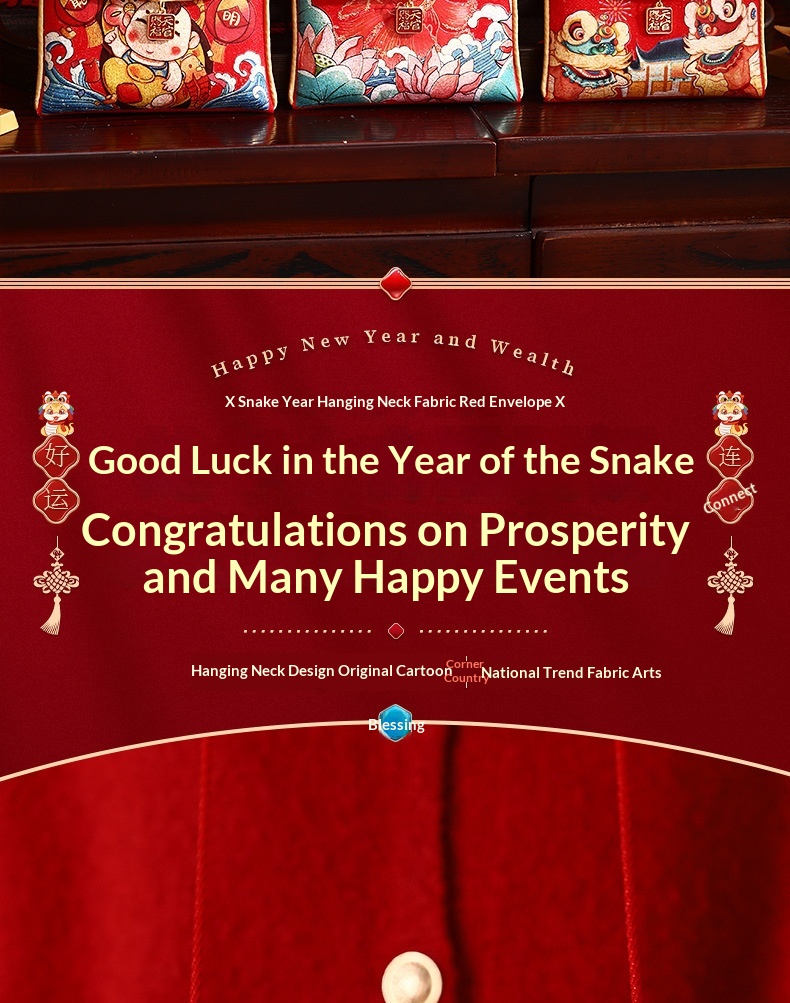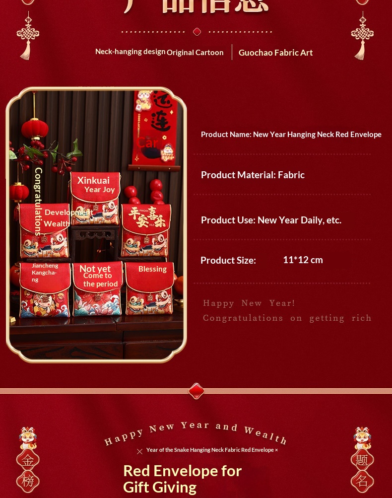 Dimensions: (when folded, can hold up to 3,000 RMB) fabric red envelope