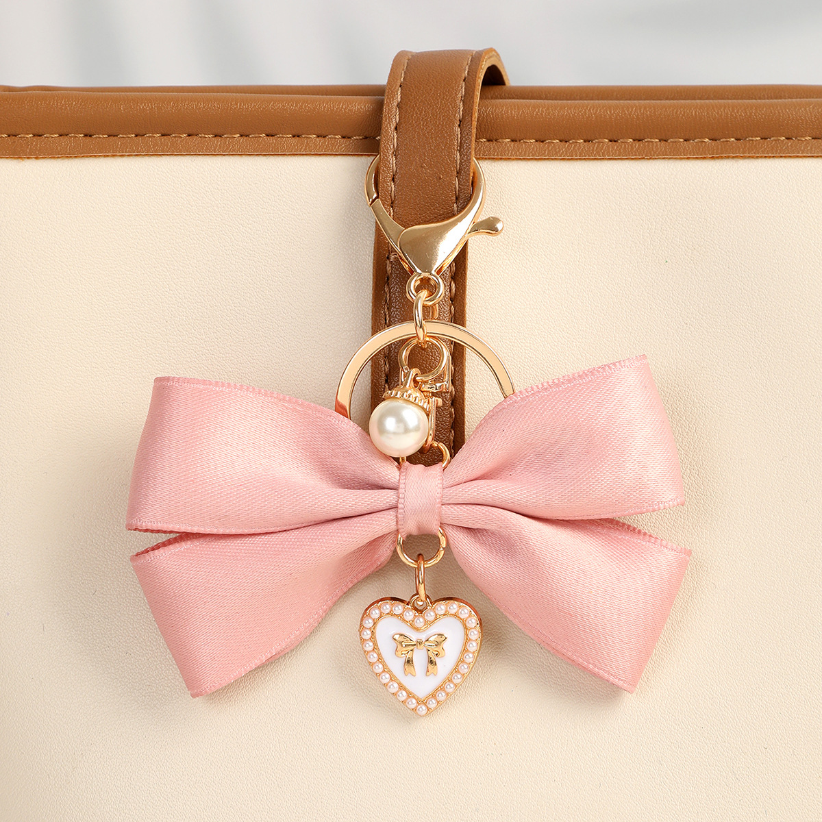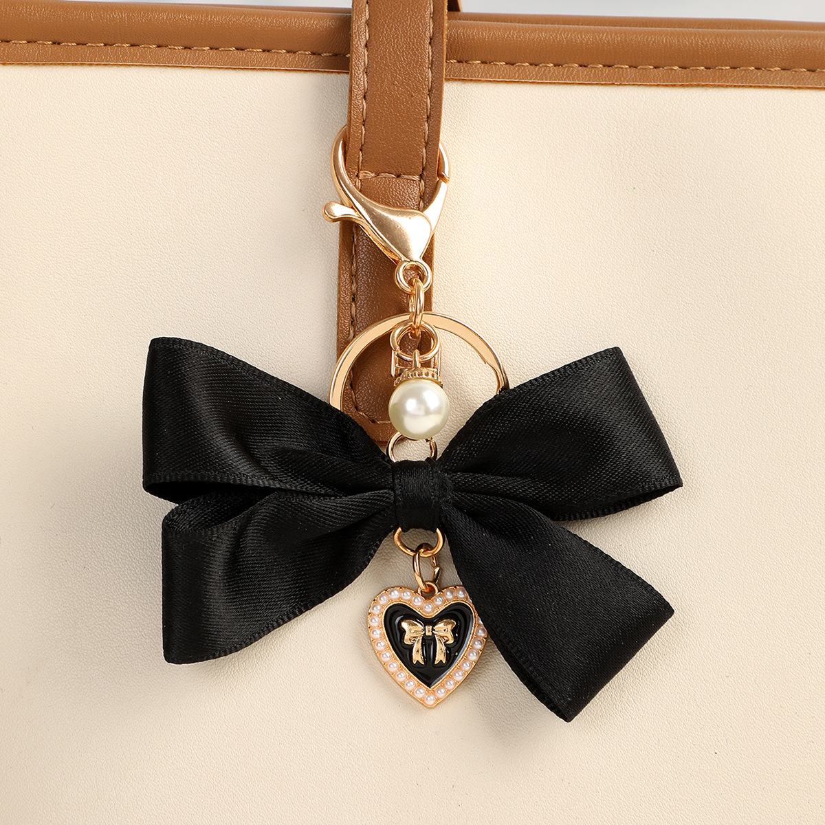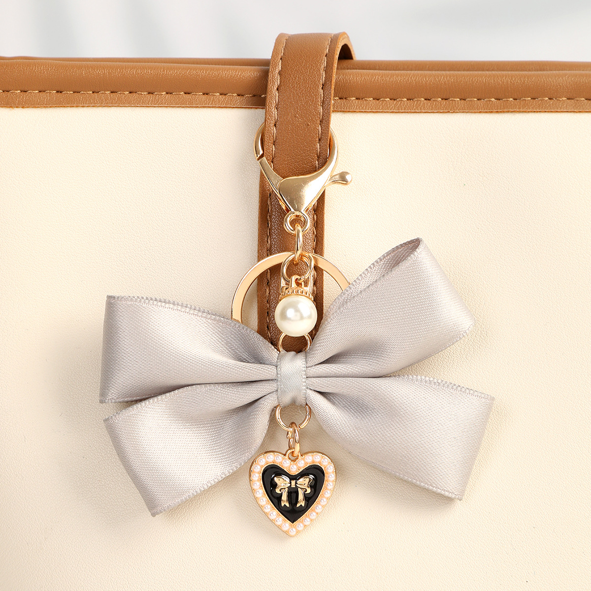 Color: K3368 fabric bow key ring pendant Gray, K3369 fabric bow key ring pendant pink, K3370 fabric bow key ring pendant Black, K3371 fabric bow key ring pendant Milky White
