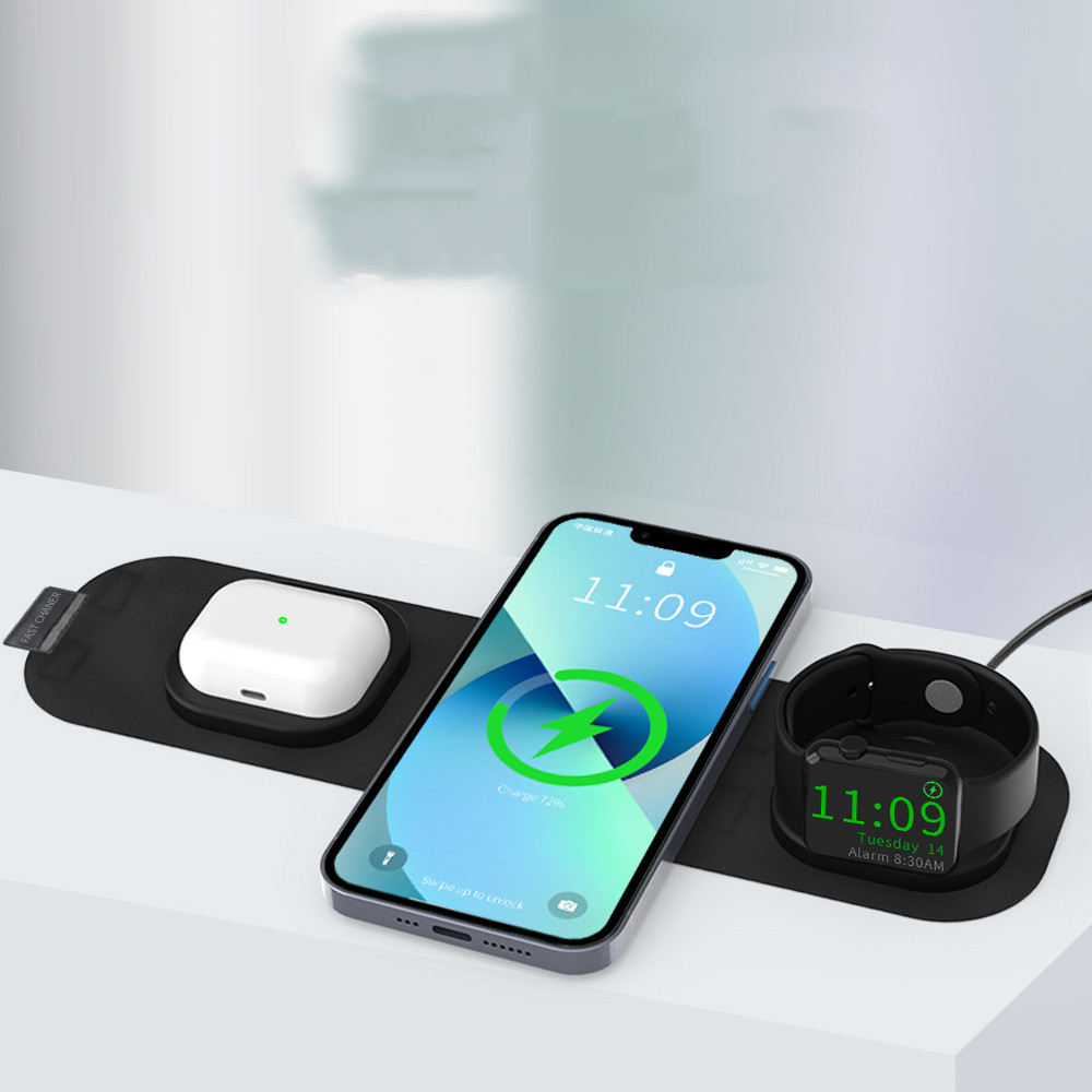 【 3 in 1 Wireless Charging 】 The 3 in 1 wireless charger station can charge phones, apple watches, and AirPods.