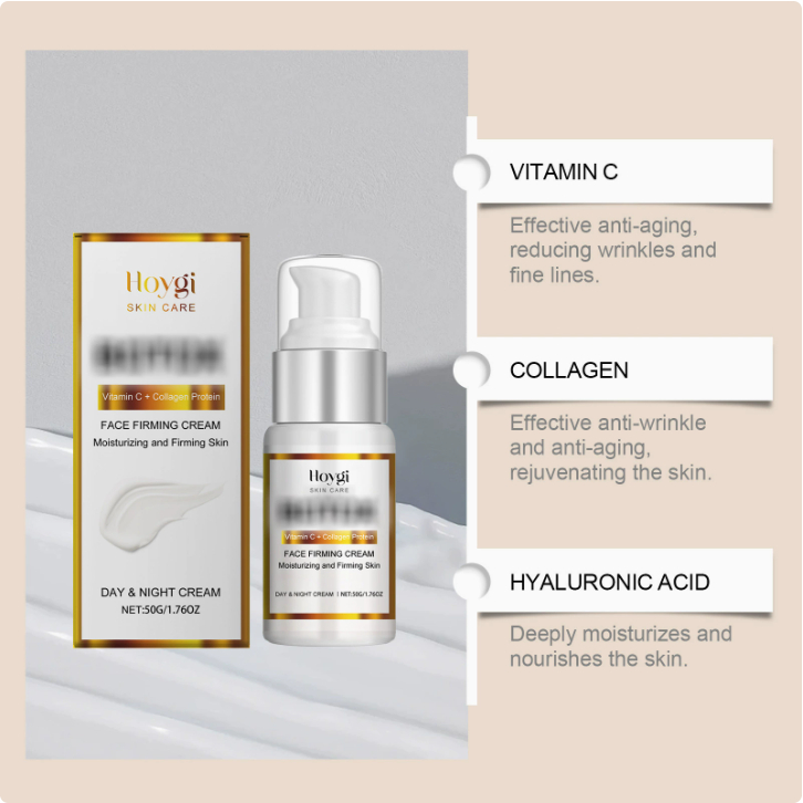 Ingredients: water, ascorbic acid (vitamin C), collagen, hyaluronic acid, acetyl tripeptide -1.