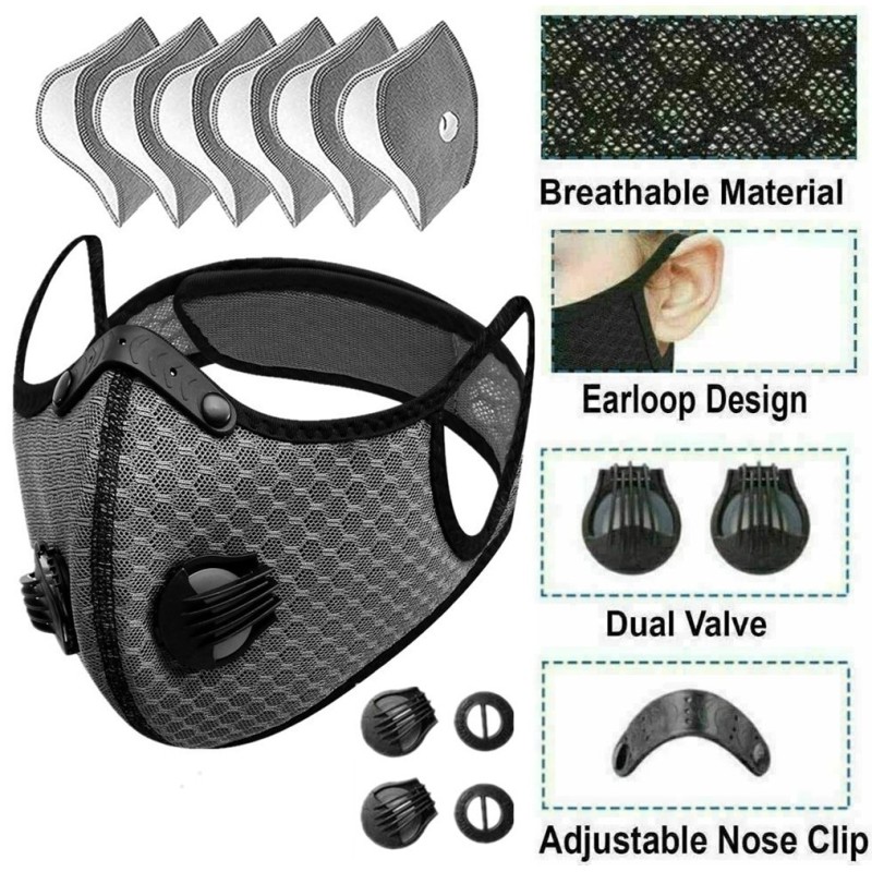 Face Mask with Active Carbon Filter Breathing Valves Reusable Cycling Sport Mesh