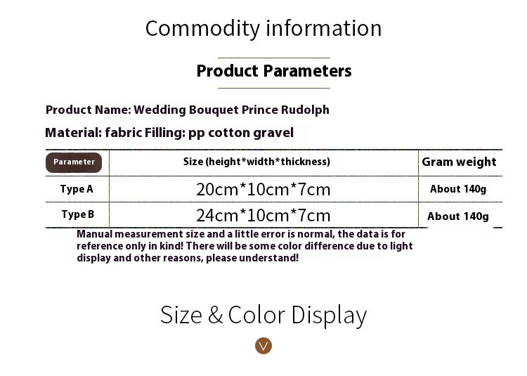 Specifications: wedding season bouquet Rudolf doll for men, wedding season bouquet Rudolf doll for women