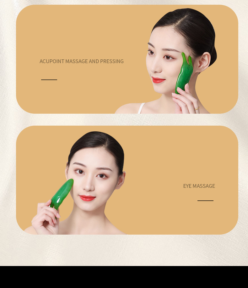 With a jade-like feel, massage 3-5 times a day to lift the skin, lift the face and brighten the complexion