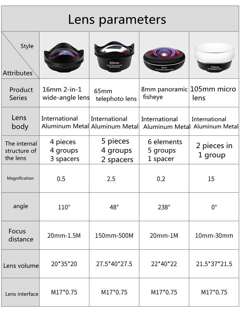 mid-to-high end 4-piece portrait lens + fisheye + wide angle + macro