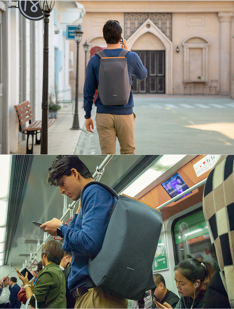 The internal structure of the bag: zipper pocket, mobile phone pocket, ID pocket, computer pocket