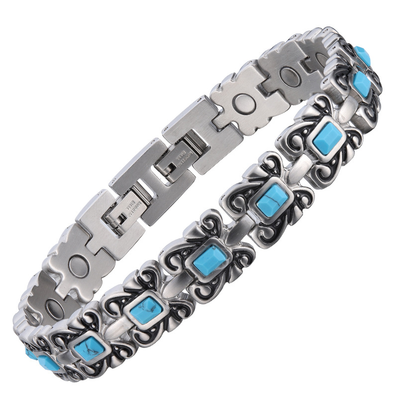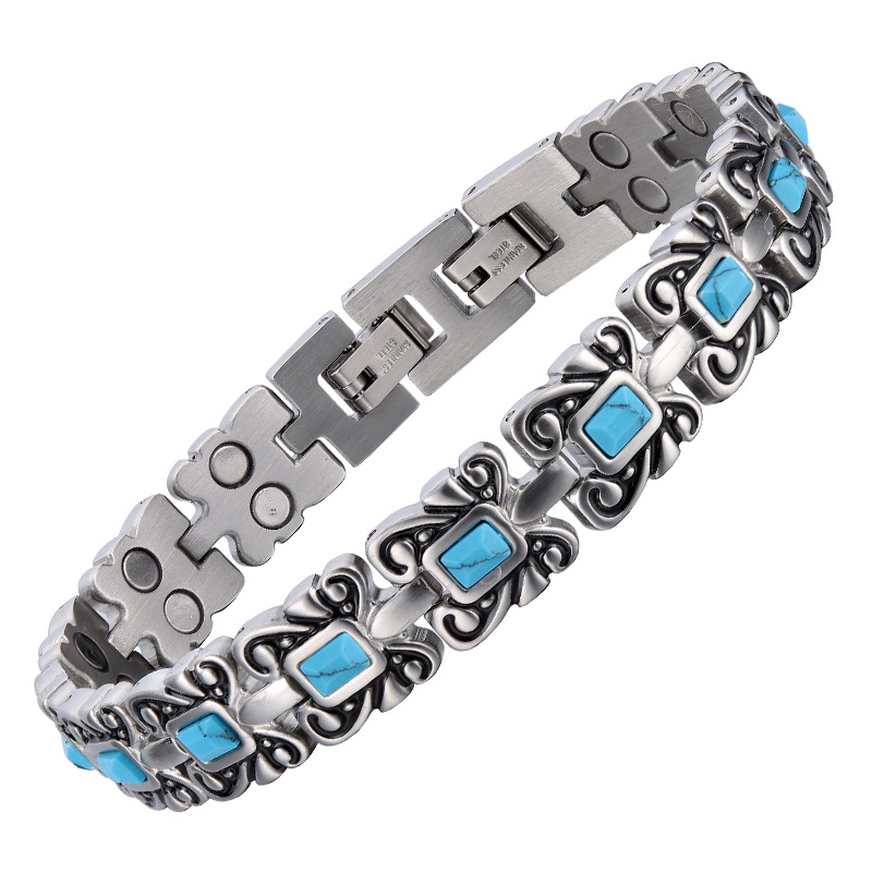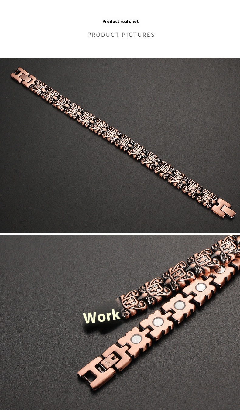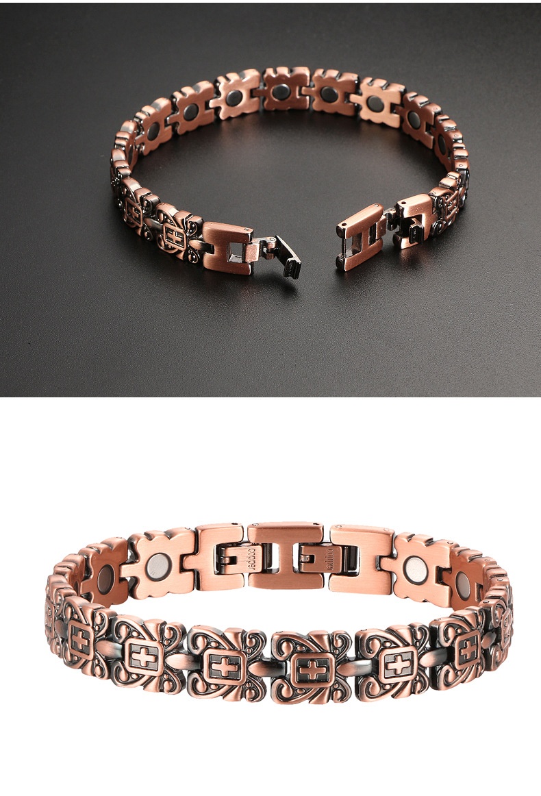 Color: red copper, inlaid with blue Turkish stone single row magnet, inlaid with blue Turkish stone double row magnet