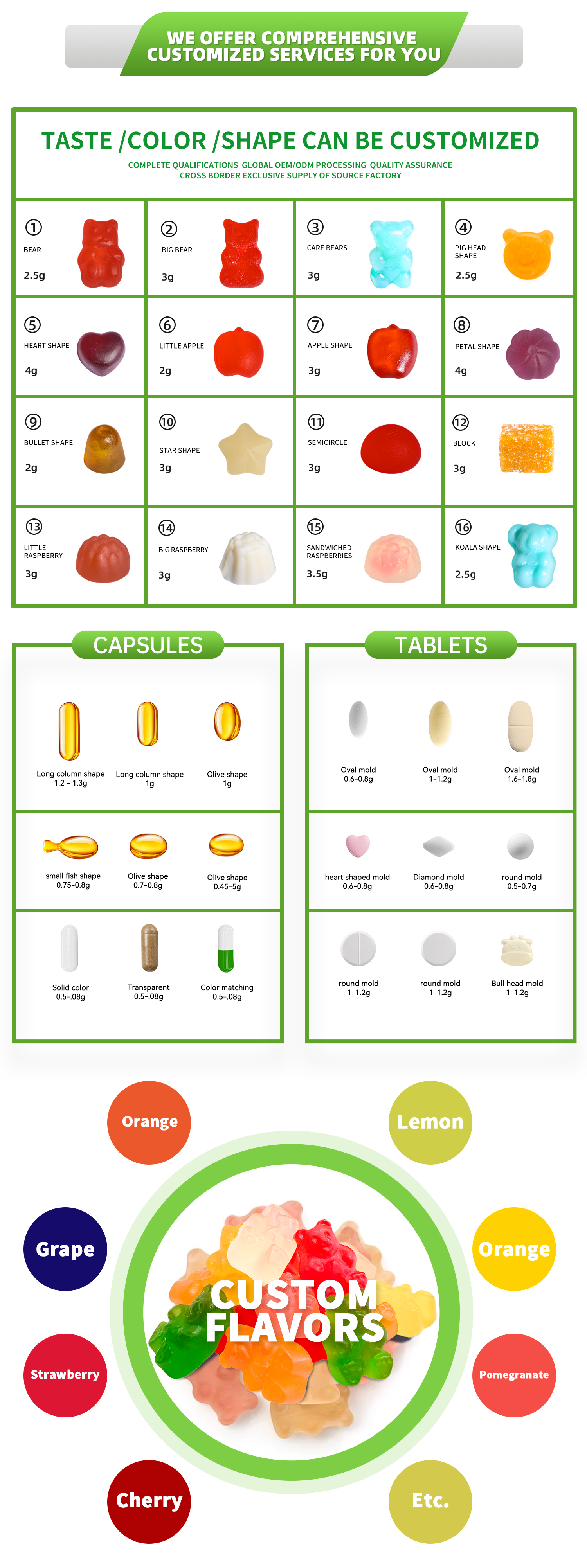 custom logo, label, formula, capacity |