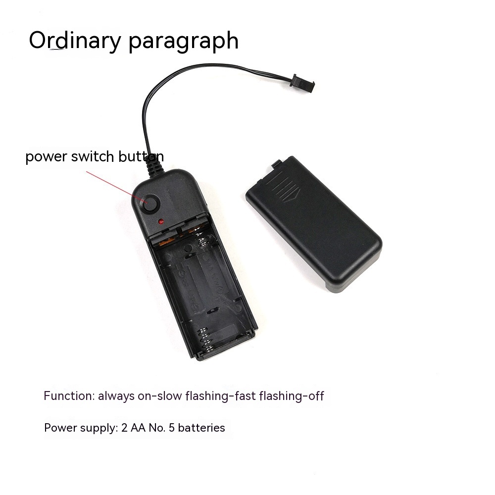 Regular version (insert 2 batteries into the battery compartment, press the switch button, the mask light will remain on. Press the button again, the mask light will flash quickly. Press the button again, the mask light will flash slowly. Press the button again, the mask light will turn off.)