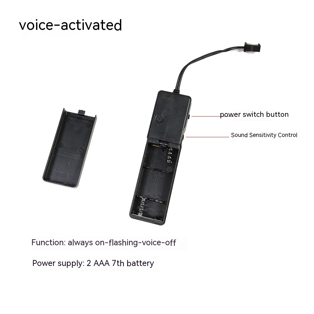 Voice controlled version (Insert 2 batteries into the battery compartment, press the switch button, and the mask light will remain on. Press the button again, and the mask light will flash. Press the button again, and the mask light will turn on and off according to the sound. Press the button again, and the mask light will turn off.)