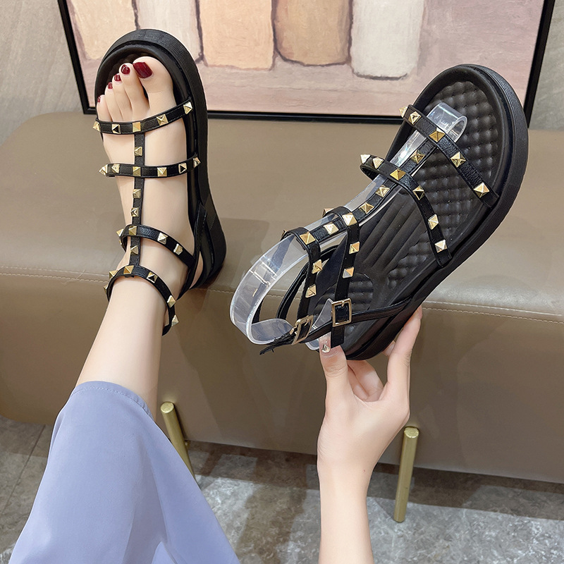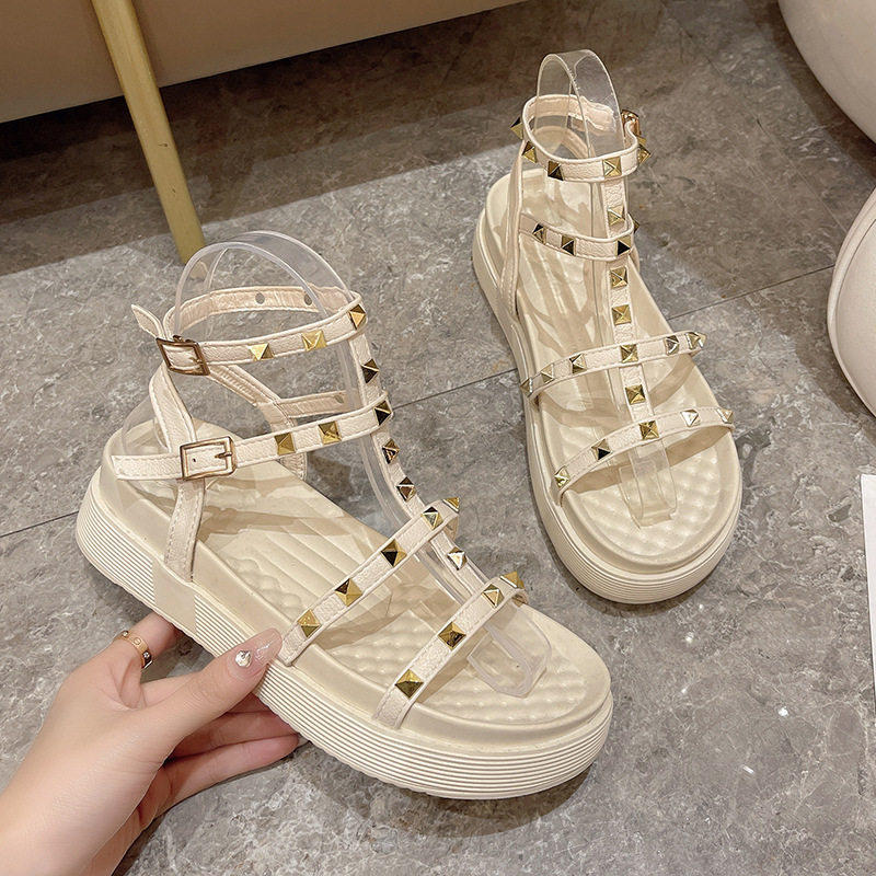 Fairy Style Roman Sandals For Women Round Toe Flats Rivet Platform Sandals For Women