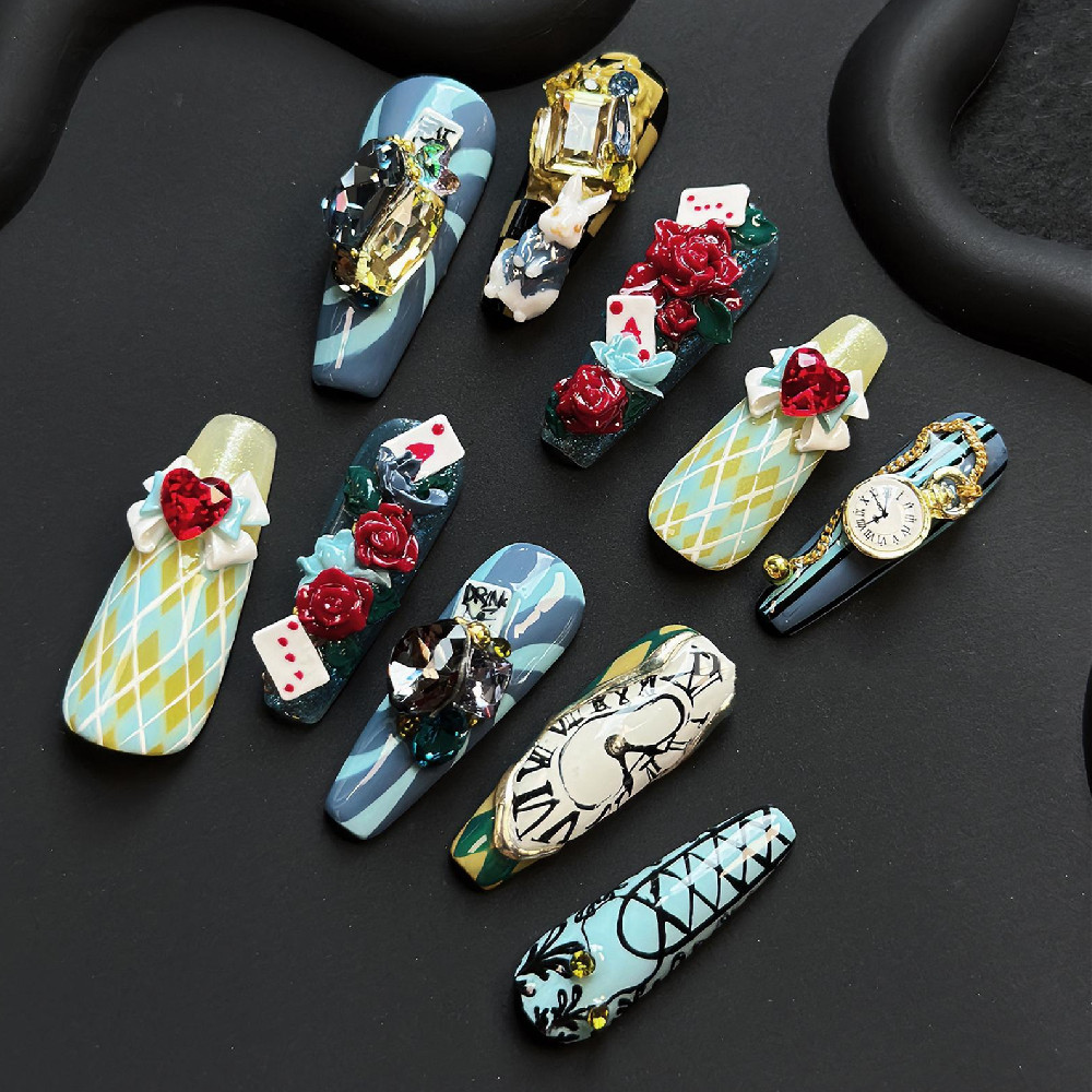 Fairy Tale Hand-painted White Hot Girl Manicure Customization Fake Nails Size