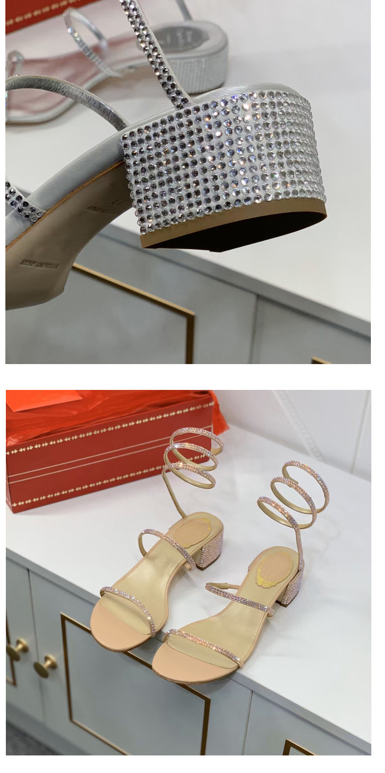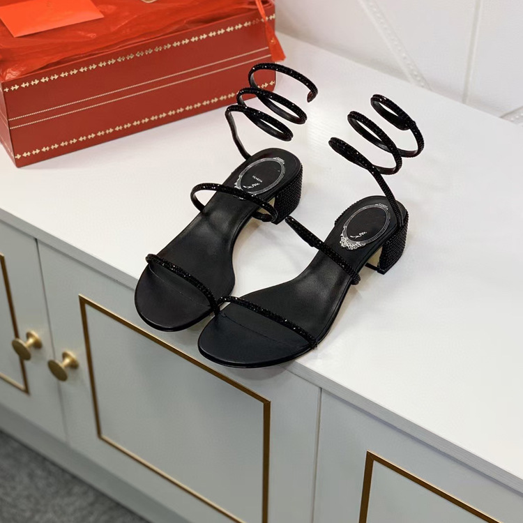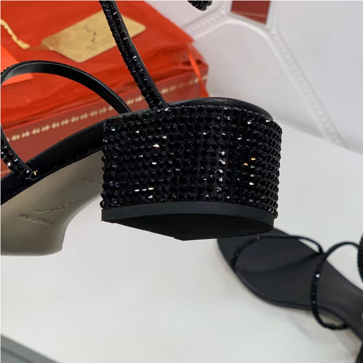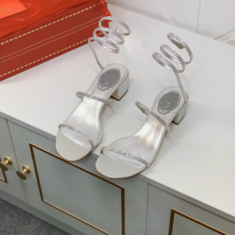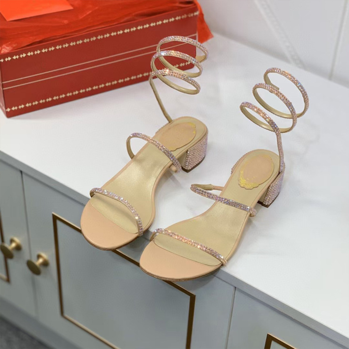 Fairy Wind Snake Wrap Summer High Heel Rhinestone Chunky Heel Women's Shoes