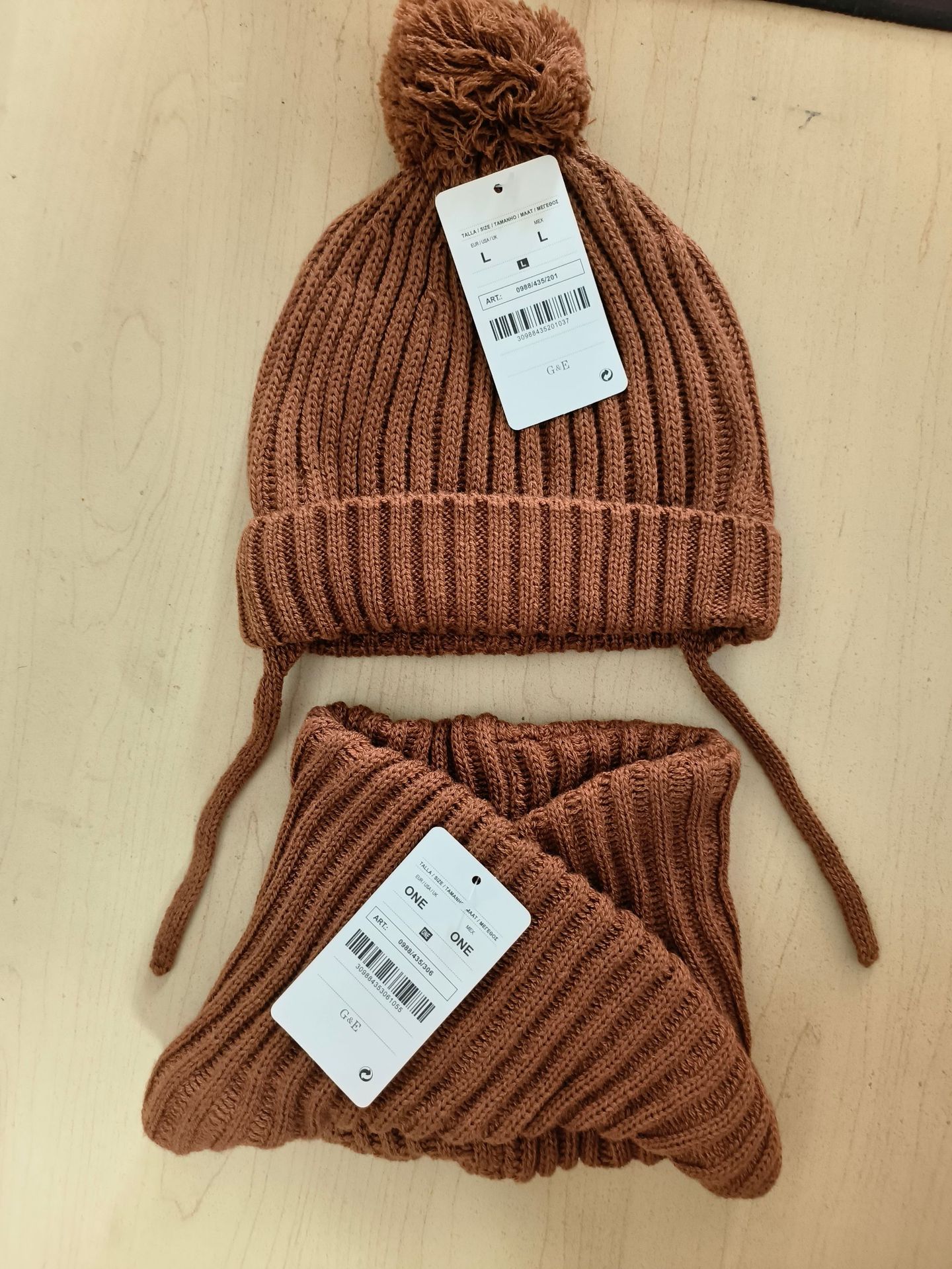 Material: Hat Outer: Acrylic Hat Inner: Cotton Scarf: Acrylic